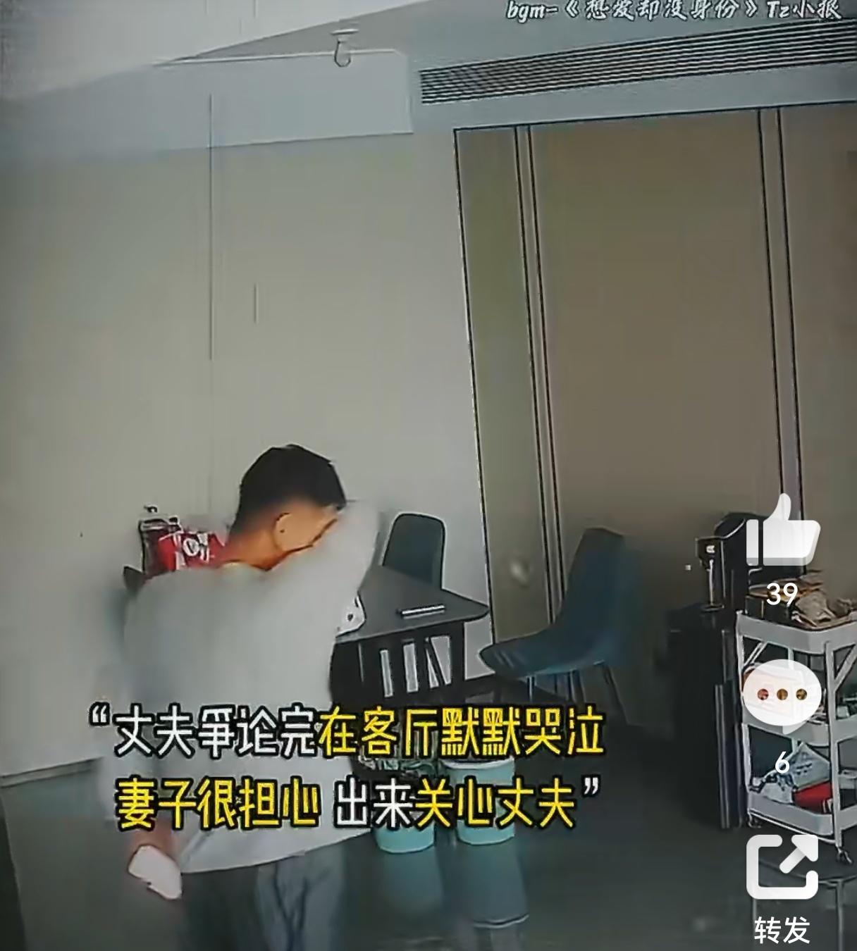 丈夫哭着求母亲你曾也是儿媳 如果这个事情是真的,婆婆做的肯定不对,支持丈夫的做法。但看视频感觉是摆拍的,家庭中有谁会拿着摄像机拍摄这种镜头?不像是监控拍摄,因为镜头跟着丈夫旋转,而且还转换不同角度,明显是一种跟拍。如果是策划摆拍,故意激化家庭矛盾需要惩罚,最起码要封号。