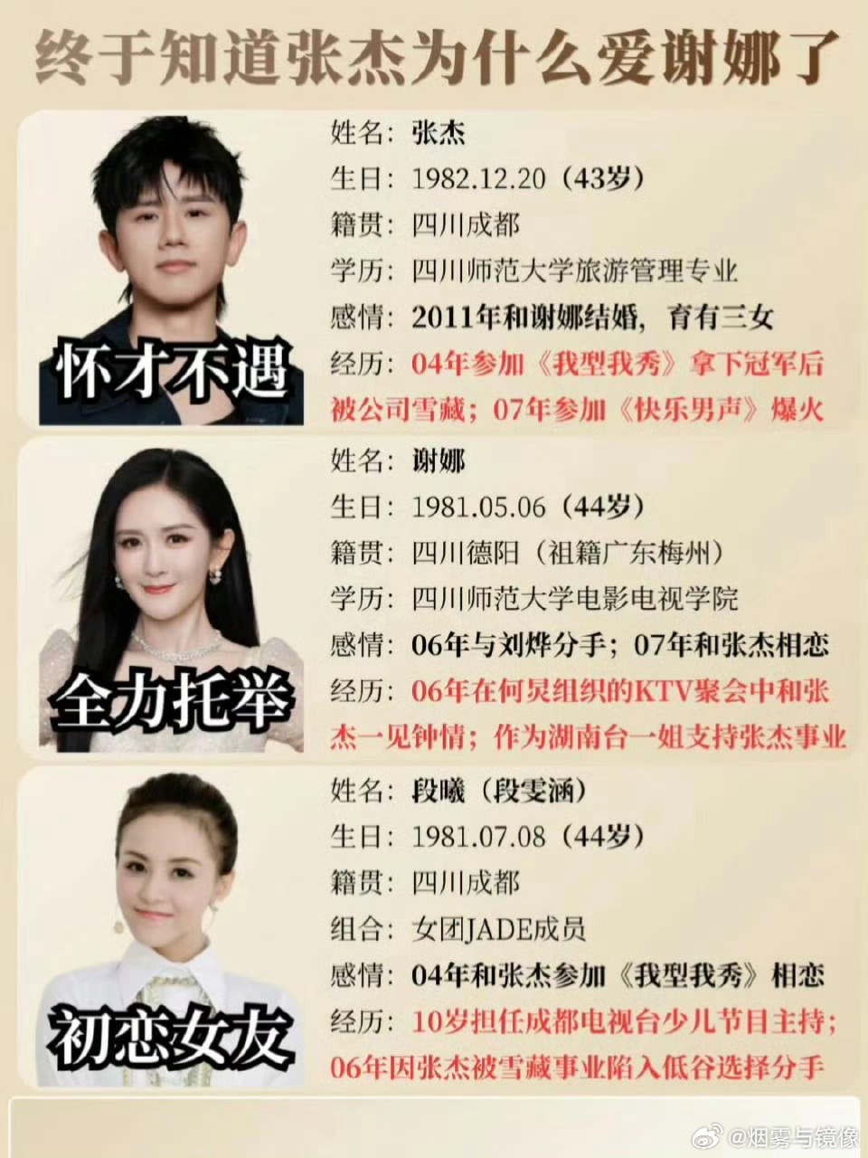 张杰前女友 被出轨是事实什么瓜张杰前女友 被出轨是事实段曦发文总结:1.张杰确实出轨了;2.她被造y很多年张杰谢娜没帮她澄清过;3.她跟薛之谦一边,因为薛之谦当年帮过她