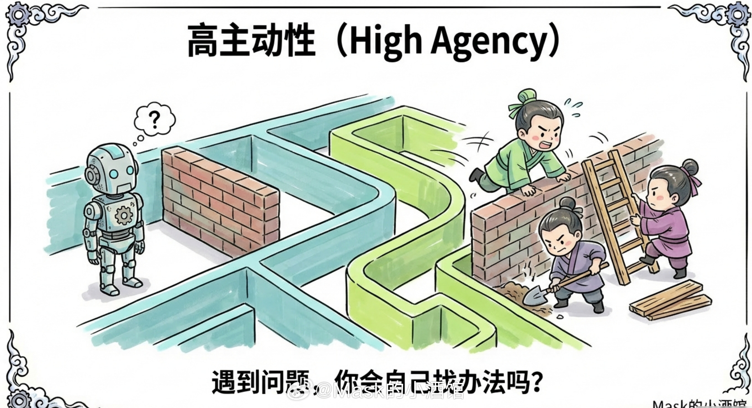 他说以前的标准答案是学编程,但现在编程已经不算核心技能了。真正重要的是那些软的东西,是你遇到问题会不会主动找办法,是你能不能不断冒出新想法,是你面对快速变化的世界会不会慌!