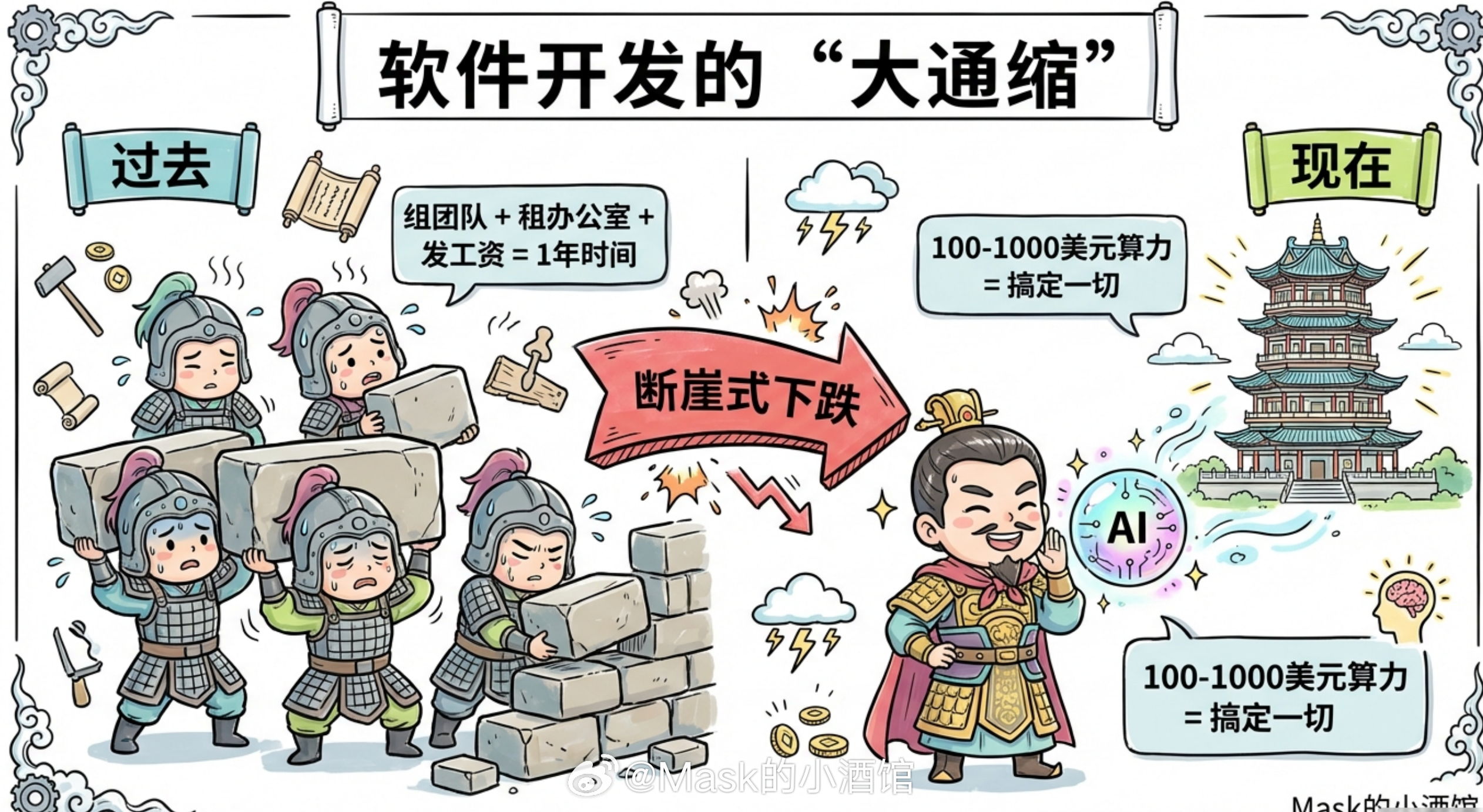 不是说技术不重要,而是说当技术变得唾手可得的时候,决定输赢的是人的判断力、创造力、还有你能不能抓住别人的注意力。这可能是这代人要面对的最大悖论。工具越强大,对使用工具的人要求越高。以前你技术不够可以埋头苦练,现在技术都给你了,考验的是你到底想干什么,能不能说服别人跟你一起干。AI把门槛降低了,但天花板反而更高了。因为当每个人都能轻松做出产品的时候,真正稀缺的就是那个知道该做什么产品的人!