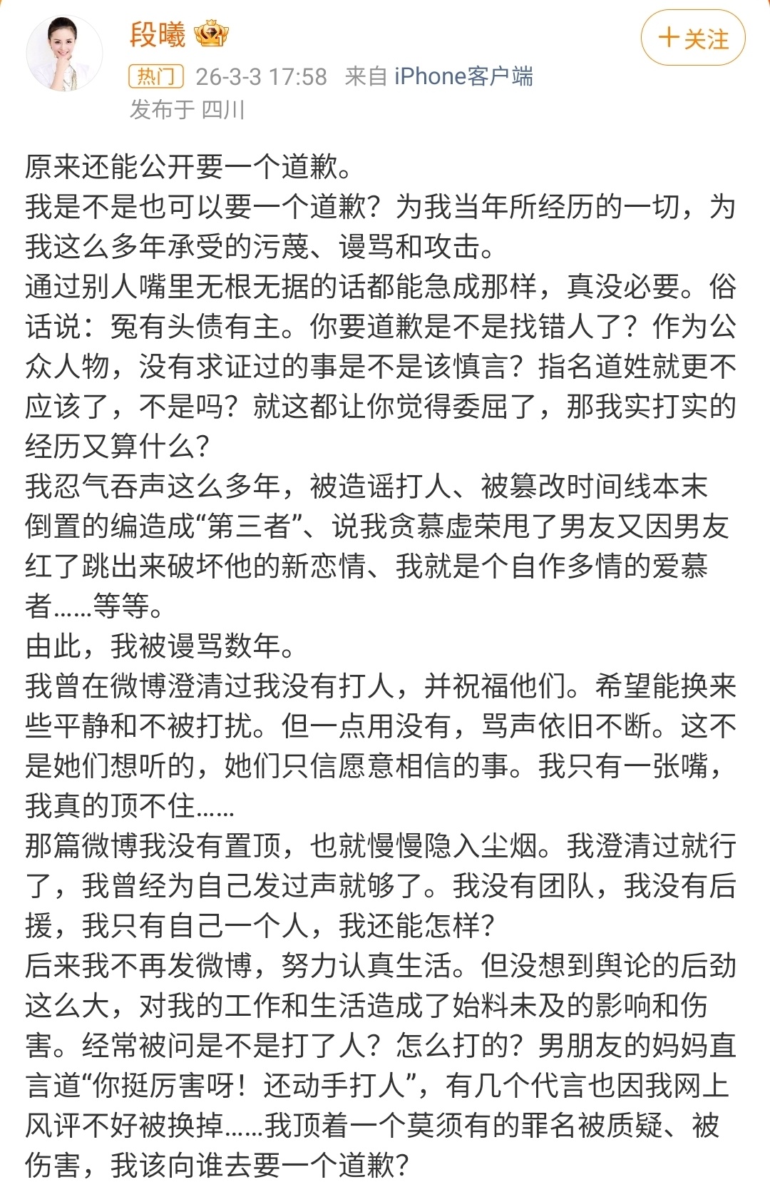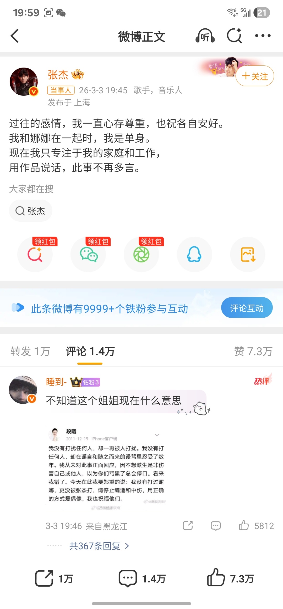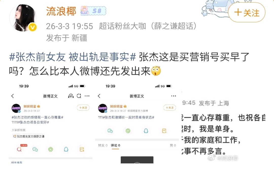 结果张杰前女友段曦直接跳出来发长文,暗戳戳站队,直接把张杰架在火上烤了!人家张杰好好的没招谁没惹谁,当年的旧账都沉了多少年了。
