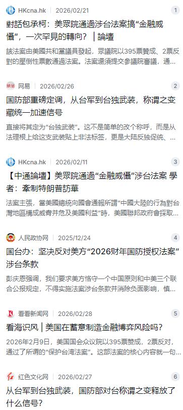 特朗普突然摊牌了!美国众议院高票通过法案,要把中国大陆踢出G20和国际清算银行。但这次,我们根本没按套路出牌,直接改了对“台军”的称呼,把美日彻底整不会了。 麻烦看官老爷们右上角点击一下“关注”,既方便您进行讨论和分享,又能给您带来不一样的参与感,感谢您的支持! 这件事得从头捋一捋,信息量不小,但脉络其实挺清楚。2026年2月9号,美国众议院那边搞了个大动作,以395票赞成、2票反对的压倒性结果,通过了一个所谓的“保护台湾法案” 。这名字听着挺唬人,好像要给台湾当保镖,但仔细一看内容,其实是在金融领域下刀子。法案的核心意思就是,如果中国大陆对台湾采取行动,美国就要想办法把咱们从G20、国际清算银行这些顶级的国际金融圈子里给踢出去 。 但你得知道,这玩意儿现在还只是个“半成品”,它刚在众议院闯关成功,接下来还得过参议院那一关,最后才能到特朗普的办公桌上决定签不签 。而且这帮提案的议员也挺有意思,他们嚷嚷得凶,却刻意绕开了那个号称“金融核弹”的SWIFT(环球银行金融电信协会)系统 。为啥?因为大家都门儿清,俄罗斯那次的制裁是一回事,真要对全球贸易链核心的中国动SWIFT,那美元霸权的根基也得跟着晃三晃,这代价美国现在根本承受不起 。 所以你看,这法案看着强硬,其实给自己留了后路。条款里写得明白,最后怎么执行、执不执行,总统说了算,要是觉得“不符合美国国家利益”,随时能喊停 。说白了,这更像是美国内部那帮对华强硬派演的一出戏,主要目的可能还不是冲着咱们来,而是想给计划4月份访华的特朗普上眼药、使绊子,生怕他真跟中国谈出点啥来 。 按照以往的套路,面对这种挑衅,咱们外交部、国台办肯定得严正交涉、强烈反对。但这次,咱们的回应有点意思,根本没顺着对方画的这个金融战场走,而是反手打出了一张谁都没想到的牌——直接改了称呼。就在法案通过后没几天,大家发现解放军在谈及台海局势时,不再用以前那种相对中性的“台军”或者“台湾地区防务力量”,而是换了一个极具法理分量的新词:“台独武装” 。 这可不是抠字眼,这背后藏着的是大智慧。以前叫“台军”,哪怕在前面加上“台湾地区”,在岛内有些人眼里好像还保留着那么一点“对等”的模糊空间。但现在直接定性为“台独武装”,这就彻底撕掉了那层伪装。从法理上讲,这支武装力量不再是所谓的“防卫力量”,而是实实在在的分裂势力、是武装团体,是《反分裂国家法》明确的打击对象 。这一改,直接把岛内那支军队的合法性给清零了,告诉所有人,这就是一帮跟着民进党、跟着赖清德搞分裂的打手,性质完全变了。 这下子,美日那边的节奏全乱了套。他们原本的计划是通过金融法案,摆出一副“我有的是办法治你”的强硬姿态,给岛内某些人撑腰打气。结果咱们根本不理那套金融威慑,直接釜底抽薪,把台海问题的性质重新定了调。你美国不是要“保护台湾”吗?你保护谁?你保护的是中国的领土上一个非法的“台独武装” 。这话你要是接,就等于公开承认自己在支持分裂势力,在国际道义上瞬间就矮了一截;你要是不接,那所谓的“保护法案”就成了一个空壳子,打在棉花上,根本使不上劲。 这一招确实是高,直接打在了对手的软肋上。美国那帮议员还沉浸在上个世纪那种靠几个法案就能呼风唤雨的美梦里,以为拿金融席位吓唬人就能让咱们自乱阵脚。但他们忘了一点,今天的中国,手里攥着的牌早就不是他们能随便拿捏的了。咱们持有的美债、全球最大的制造业产能、还有那个越来越成气候的人民币跨境支付系统(CIPS),哪一样都是实实在在的筹码 。真要搞金融脱钩,华尔街那帮大佬第一个不答应,那些靠中国市场吃饭的美国企业也得急眼。 回过头看这次交手,咱们的应对确实透着一种“你打你的,我打我的”从容。既然你要在金融领域搞政治操作,那我就在政治和法理领域给你来个绝杀。把“台军”变成“台独武装”,看似只是几个字的变化,实际上是划出了一条清晰的红线,也是对国际社会的一次郑重宣告:在台湾问题上,没有什么模糊地带,也没有什么所谓的“防卫力量”,只有分裂与反分裂的斗争 。这下,美日这些外部势力再想打着各种幌子介入,就得好好掂量掂量,自己到底是在跟谁作对,支持的又是谁。 这场博弈还远没到结束的时候,但节奏已经变了。过去可能是我们跟着对方的鼓点走,他们出招我们接招。现在不一样了,我们开始自己定调子、画格子。你想玩金融威慑,那我就直接动手术刀,从根子上解决“你是谁”的问题。这一刀下去,台独势力的生存空间被进一步压缩,外部势力的干涉借口也被一并摘掉 。对于岛内那些还在观望、还在幻想“美国会出兵”的人,这无疑是一记最清醒的警钟——所谓的“台军”现在已经变成了明码标价的“武装团伙”,如果还执迷不悟,那就别怪到时候被当成分裂势力的炮灰给清理掉。
