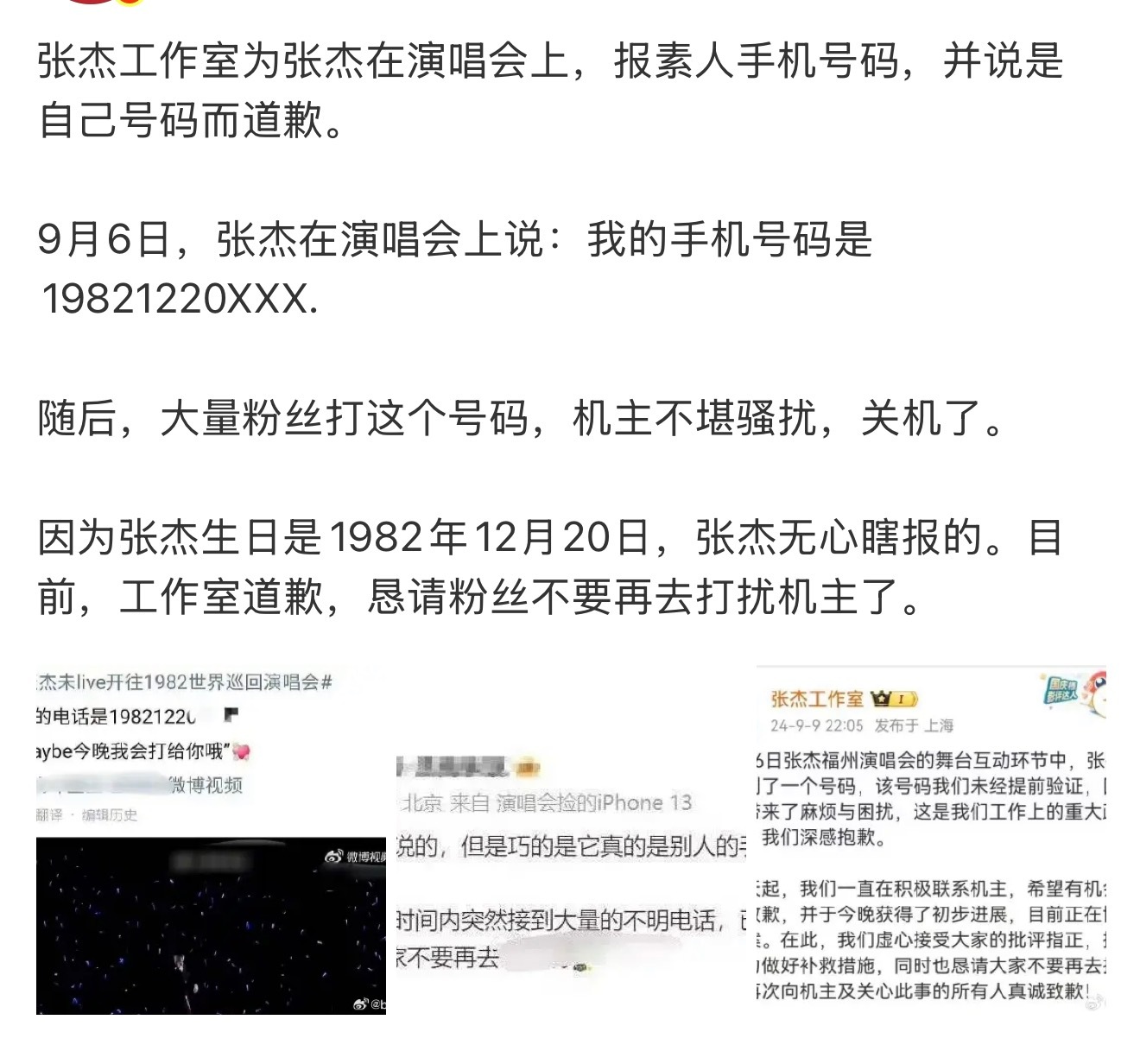 张杰之前演唱会报素人手机号害素人被骚扰