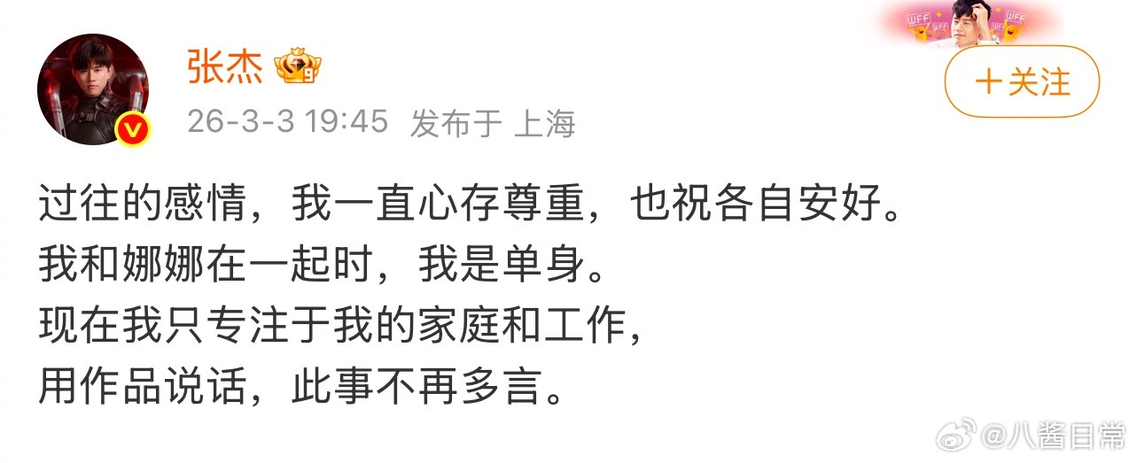 张杰回应:我和娜娜在一起时,我是单身