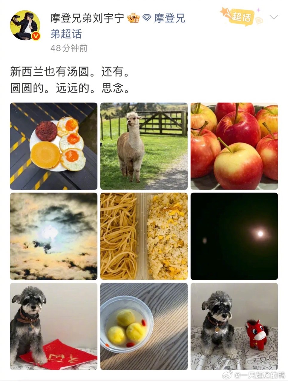 刘宇宁拍的新西兰汤圆 刘宇宁说新西兰也有汤圆,还有远远的思念。好暖的宁哥,元宵节快乐。