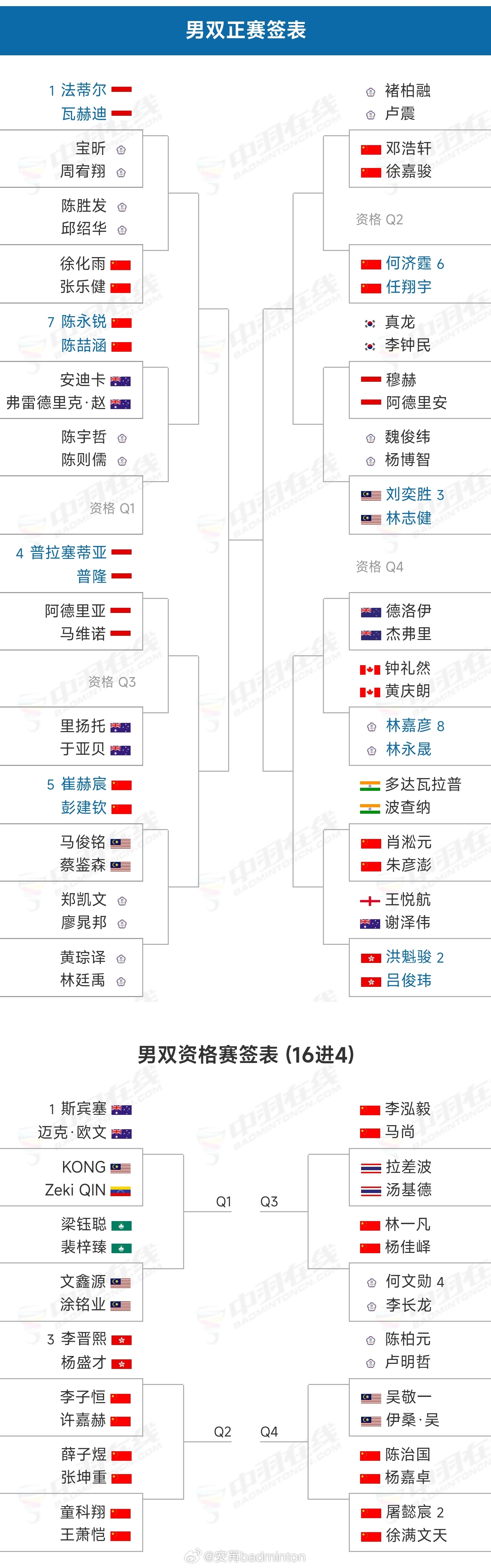 ★男双(图3)崔赫宸/彭建钦🇨🇳 vs 马俊铭/蔡鉴森🇲🇾陈永锐/陈喆涵🇨🇳 vs 安迪卡/弗雷德里克·赵🇦🇺何济霆/任翔宇🇨🇳 vs Q2徐化雨/张乐健🇨🇳 vs 陈胜发/邱邵华ᴛᴘᴇ邓浩轩/徐嘉骏🇨🇳 vs 褚柏融/卢震ᴛᴘᴇ朱彦澎/肖淞元🇨🇳 vs 多法瓦拉普/波查纳🇮🇳资格赛:Q2:张坤重/薛子煜🇨🇳 vs 童科翔/王萧恺🇨🇳Q2:李子恒/许嘉赫🇨🇳 vs 李晋熙/杨盛才🇭🇰Q3:林一凡/杨佳峄🇨🇳 vs 何文勋/李长龙ᴛᴘᴇQ3:马尚/李泓毅🇨🇳 vs 拉差波/汤基德🇹🇭Q4:杨嘉卓/陈治国🇨🇳 vs 徐满文天/屠懿宸🇨🇳