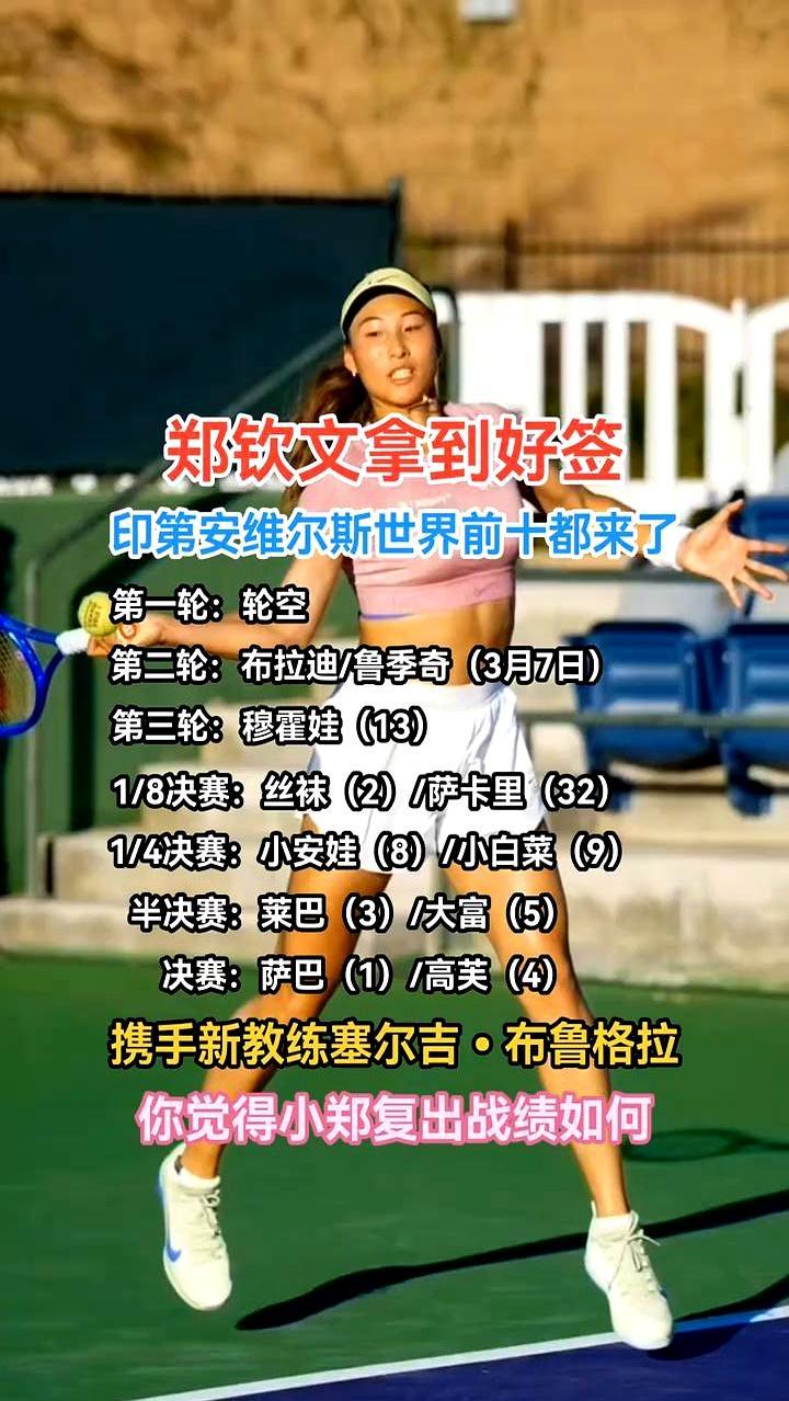 郑钦文刚把球拍往场边一甩,新教练布鲁格拉就冲她吼了句“再来!”——这不是训练,是印第安维尔斯生死局前的最后合练。 首轮轮空,次轮打布拉迪或鲁季奇?稳赢。但第三轮就撞上多哈新科冠军穆霍娃,底线拉锯战里每一分都得拿命换。再往前,斯瓦泰克在四分之一区虎视眈眈,小郑硬地还没赢过她一次。 可你别忘了,她正手轰出过190公里时速的炮弹,发球直接得分率排进WTA前十。现在布鲁格拉给她加了上旋、深落点、滑步回防——红土之王调教出的硬地新杀招,专治各种顶尖高手。 不是靠运气走到今天,而是用肘部手术后的每一滴汗砸回来的。 不是等对手犯错,而是逼她们在绝望中回球出界。 不是要证明什么,而是让世界看见:奥运冠军的刀,越磨越亮。