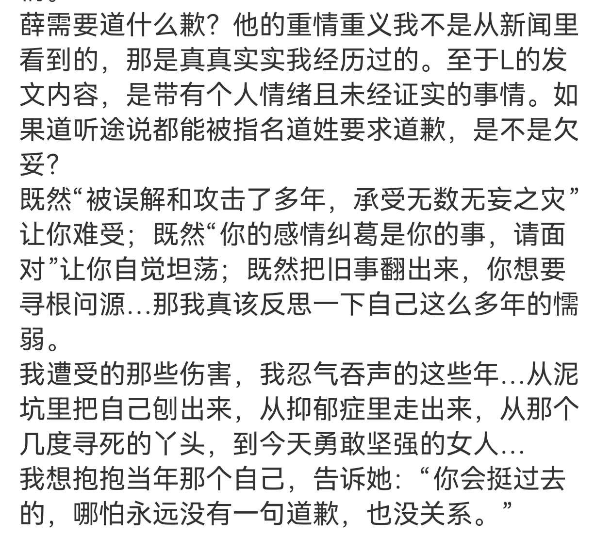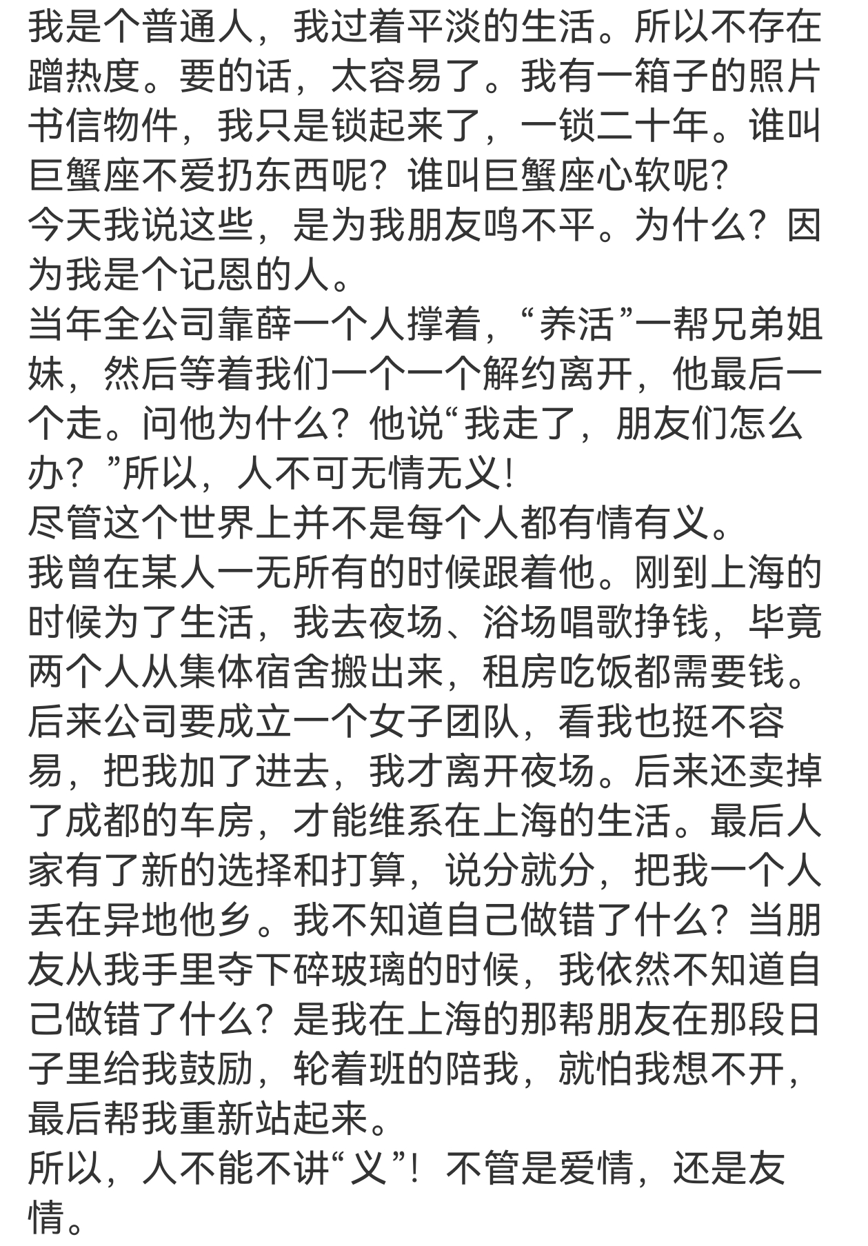 家人们我到家了,给大家总结一下张杰前女友段曦今天说了什么,大体是诉说自己的委屈并给薛之谦鸣不平