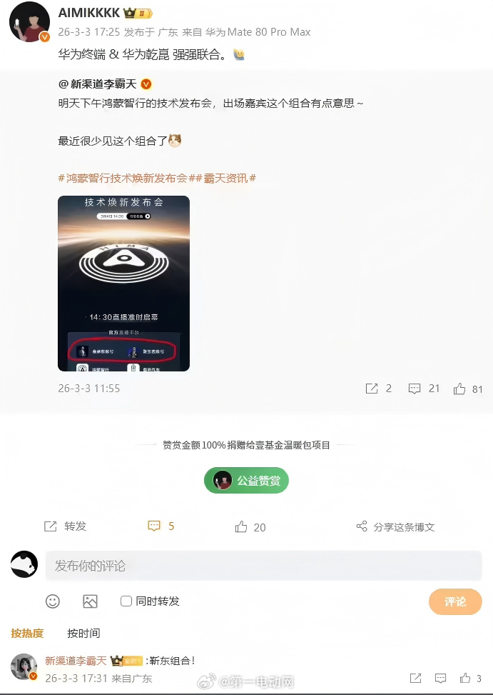 明天的华为新技术直播非常有看点,“余承东”和“靳玉志”首次合体,被称为华为终端与华为乾崑的强强联合华为乾崑智驾