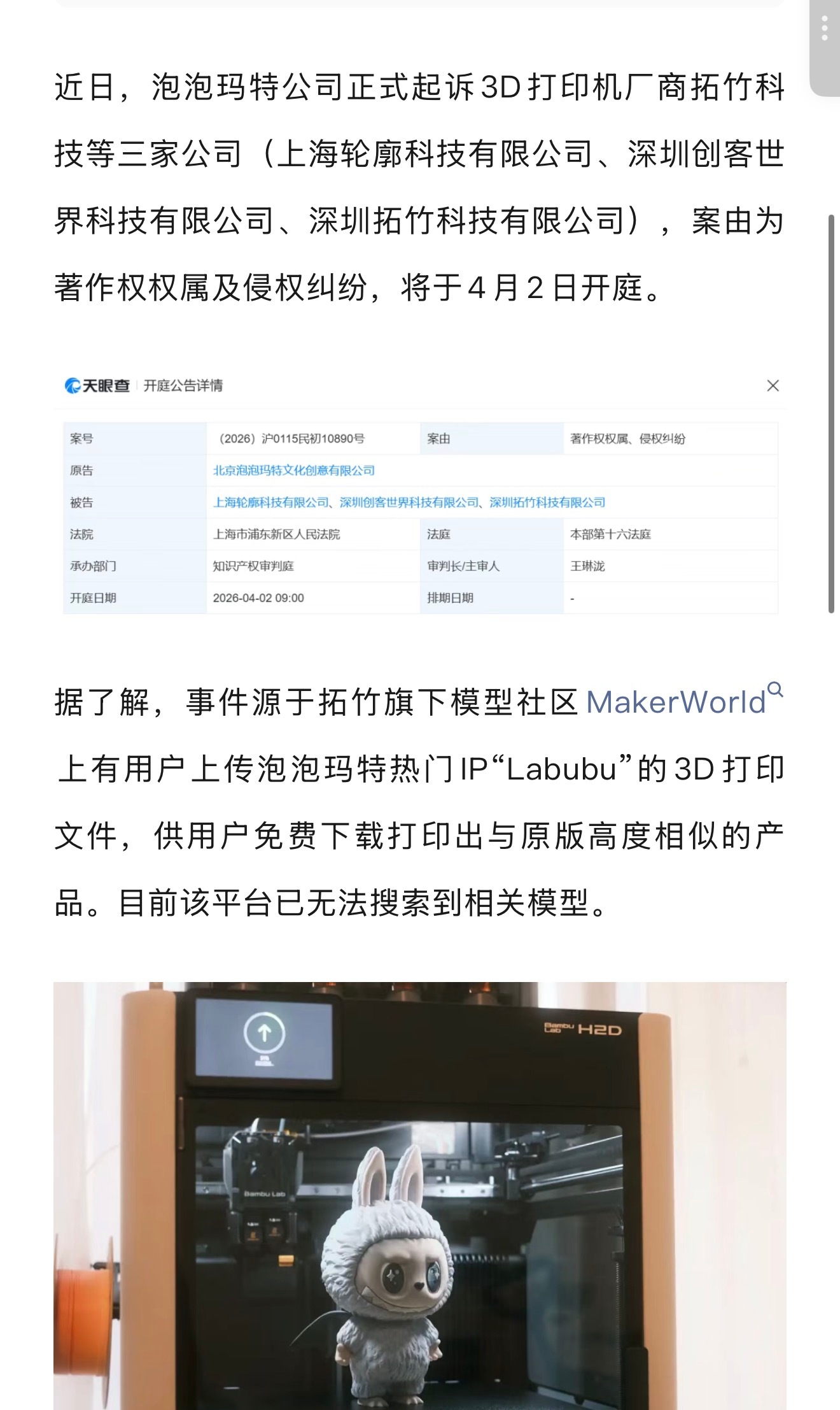 泡泡玛特把拓竹给起诉了,如果这次泡泡玛特赢了,那么拓竹将迎来大批量的起诉