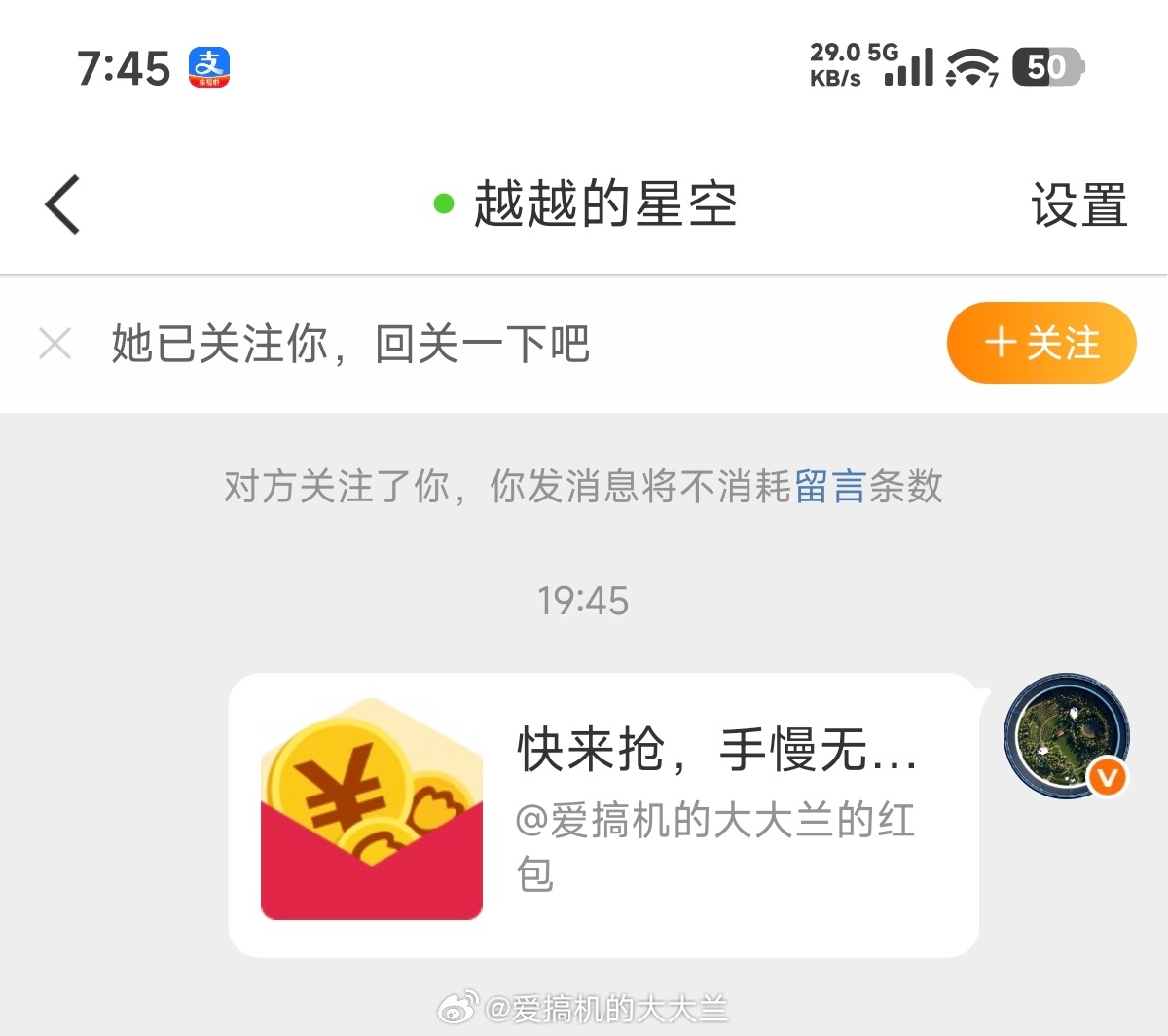 晚上从新关注里选10位新粉送红包,铁粉红包还是发群里