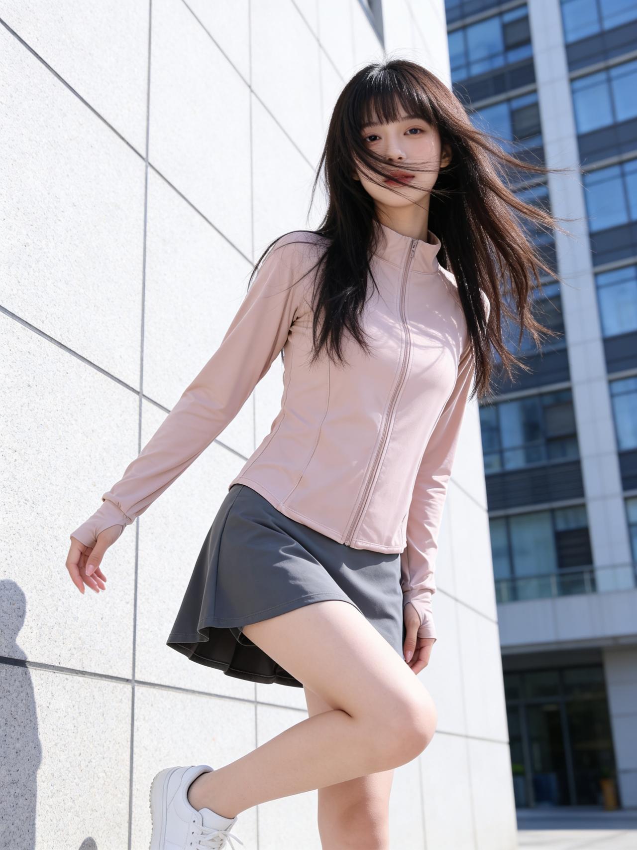粉色运动外套搭配灰色网球短裙,是春日元气感的绝佳组合。柔和甜美的粉色自带减龄buff,宽松版型舒适不挑身材,轻松穿出随性活力感。下身搭配简约灰色网球短裙,利落的剪裁拉长腿部线条,中和粉色的甜腻,甜酷平衡刚刚好。整体配色清新干净,运动风与少女感完美融合,日常出街、校园通勤都适配。搭配小白鞋或浅色系运动鞋,再扎上高马尾,瞬间变身阳光元气少女,自带青春滤镜,每一步都灵动俏皮,活力值直接拉满。时尚 粉色系运动穿搭