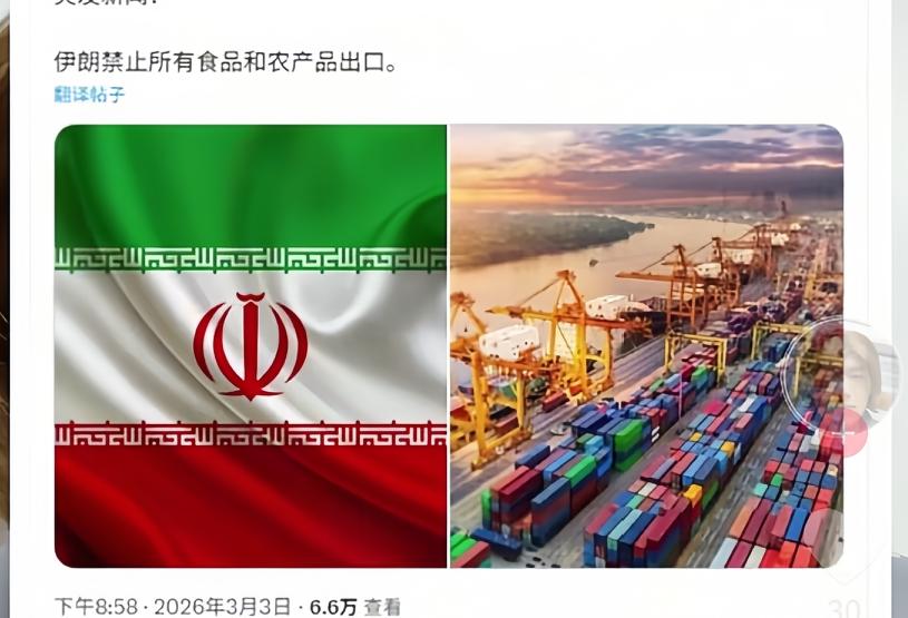 彻底战时状态了, 伊朗宣布暂时禁止所有的农产品出口 这就是战时征用。所有在境内的东西,都得先紧着自己人用。 因为伊朗的货币本身已经没有什么意义了。接下来就是能让所有人坚持下来! 这其实是在为最坏情况做准备。外部补给线被切断,国内有多少粮、多少肉、多少油,直接决定了能撑多久。 能支持伊朗持续抗争的就是食物。当然武器那些东西是必要的!