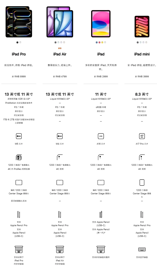 价格方面,则是4799(11英寸/128GB)/6499起(13英寸/128GB)。