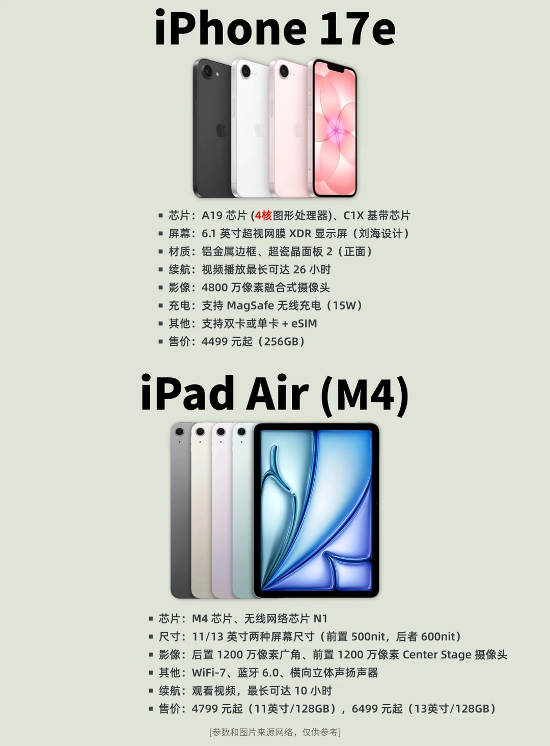 苹果iPhone 17e和iPad Air(M4)也是发布了。