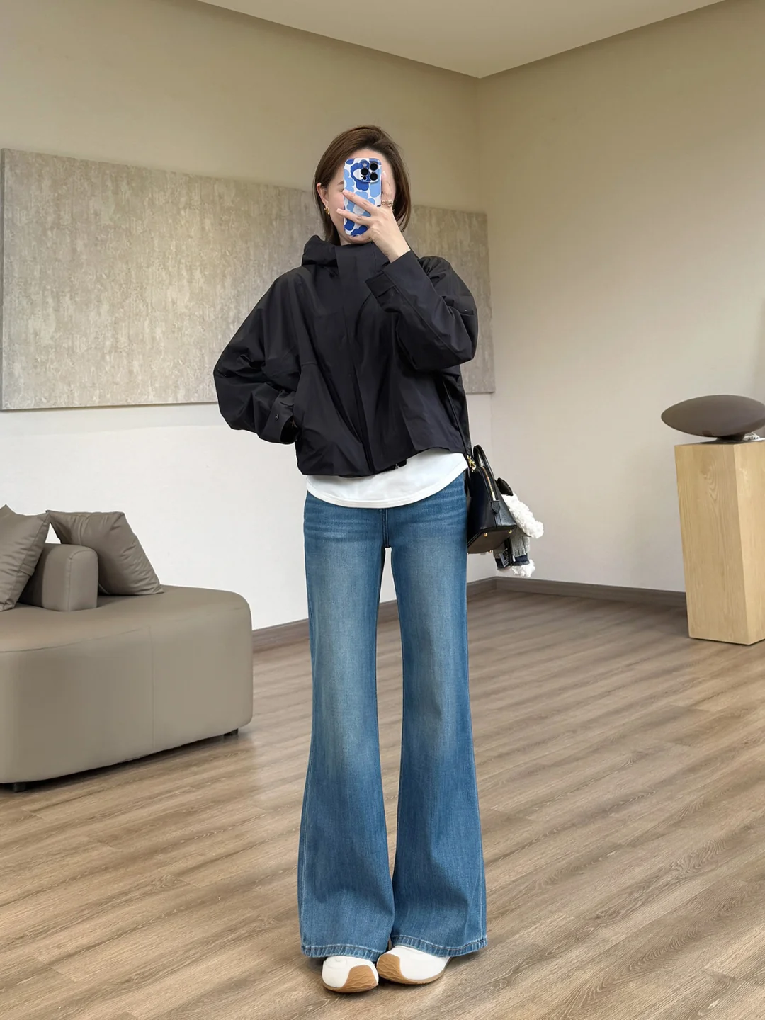 春天这么穿,又酷又减龄!🖤黑皮衣+浅蓝牛仔裤真的是万年经典,宽松版型对腿