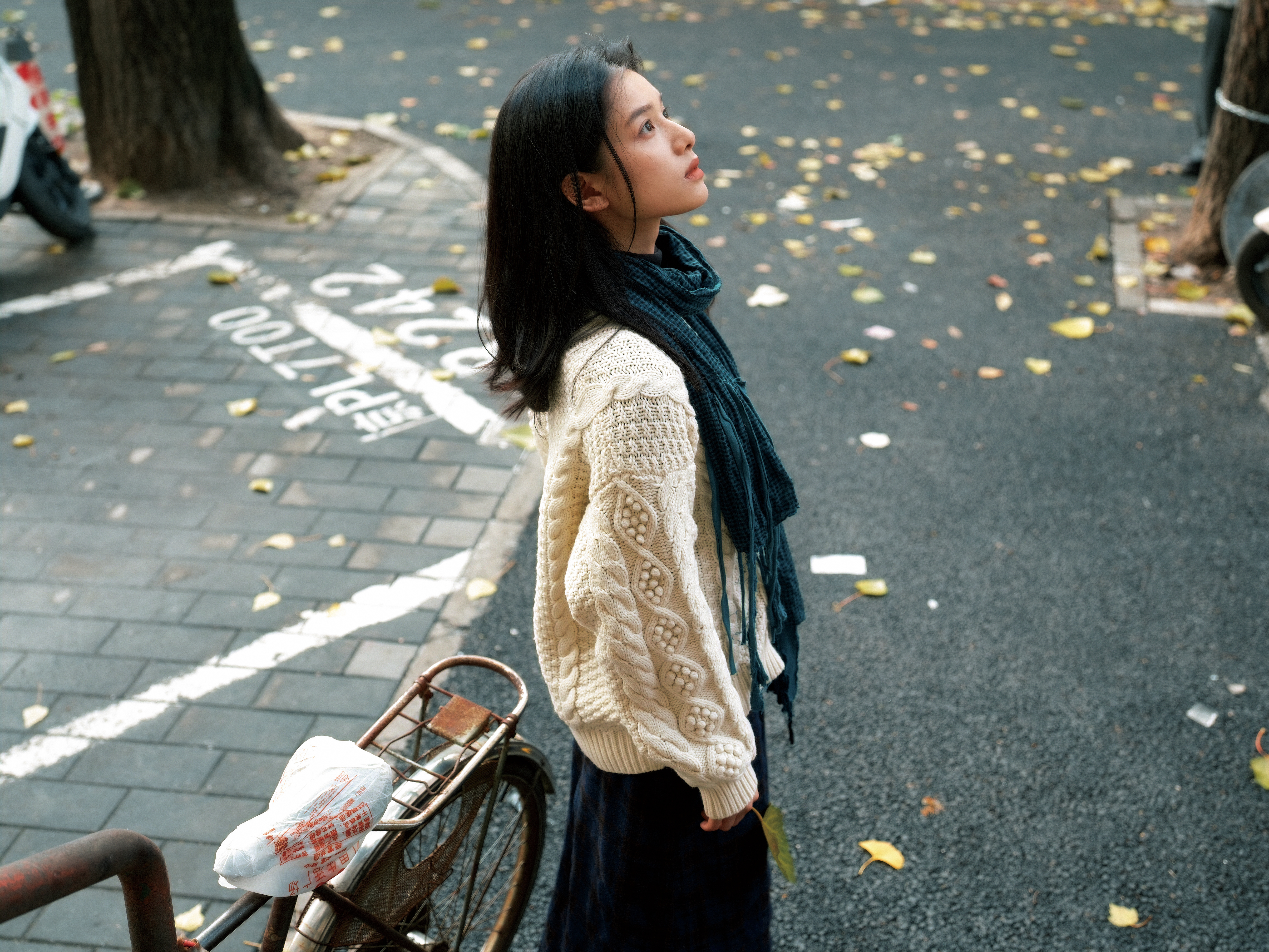 刘亦菲这条裤子挺养生,毕竟降温了肚脐眼必须护住啊