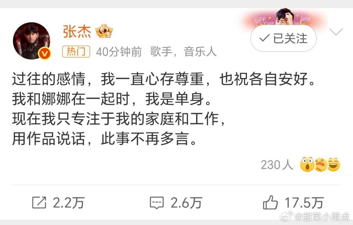 张杰回应完了,薛之谦出来回应一下吧这女的十几年后反口也不知道是谁撺掇的但是没关系“我是单身”四个字不烫嘴!
