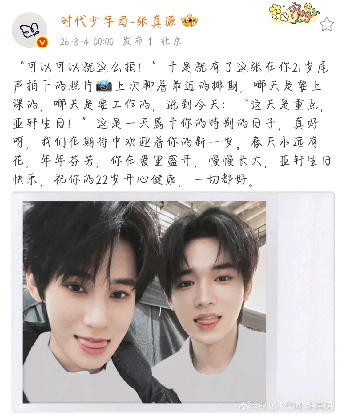 张真源卡点祝福宋亚轩时代少年团发文为宋亚轩庆生 张真源卡点祝福宋亚轩,好鲜活的文