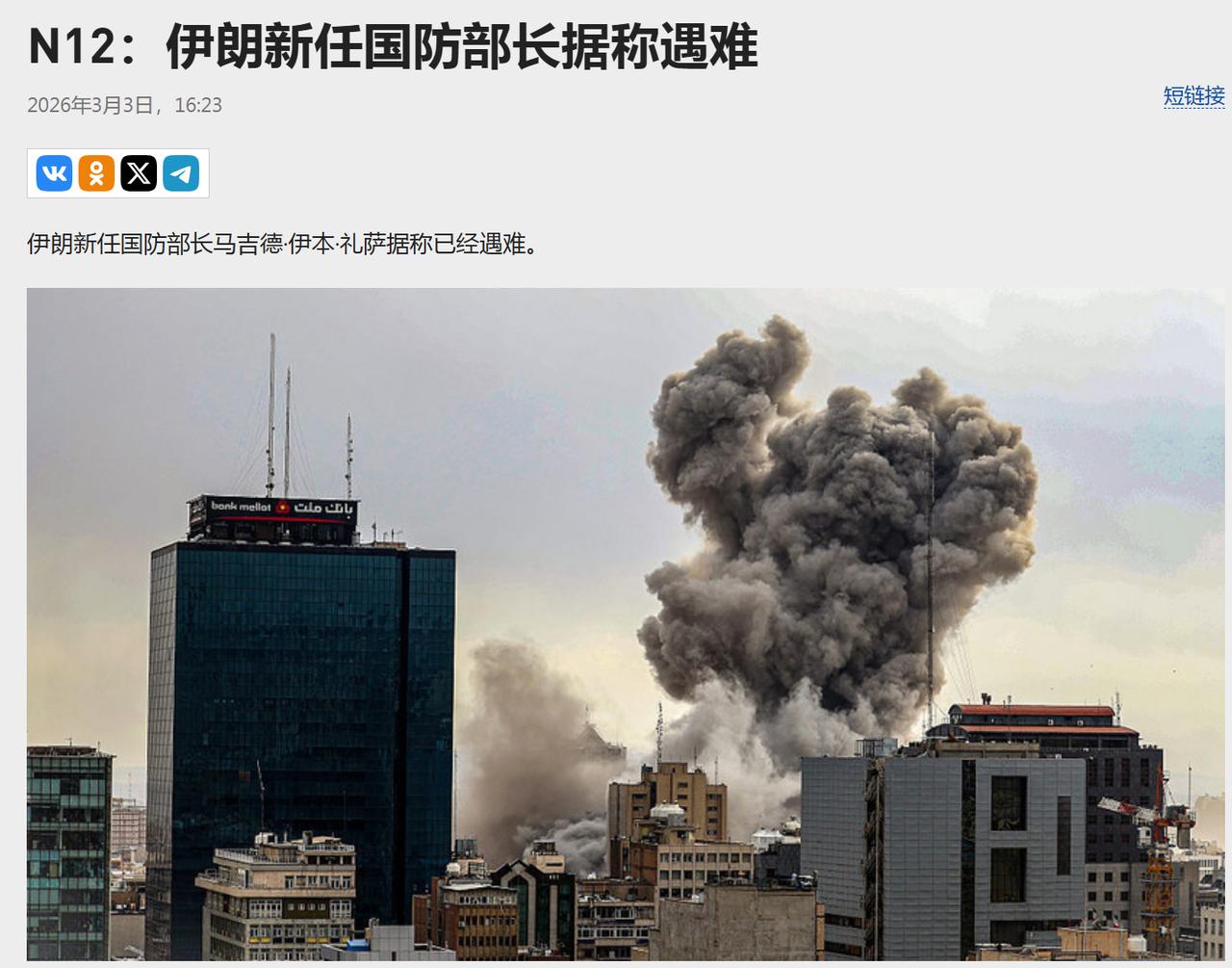 真的假的? 据RT俄罗斯新闻报道,伊朗新任国防部长伊本·礼萨可能已经遇难,但目前此消息尚未得到证实。 值得注意的是,在伊朗总统佩泽希其扬在3月1日任命伊本·礼萨为伊朗代理国防部长这个命令后,以色列就出动近百架战机,在伊朗“领导层建筑群”投下了250枚导弹,此区域是伊朗的重要权力中心,像总统府、最高安全委员会都在此处,只是不知道这位代理国防部长是否在此处。 不得不说,以色列的情报确实太准确了,它们多次发起的“斩首”行动都非常成功,这已经不是“内鬼”通风报信的问题了,它们这一套搜集情报的系统,估计美国都无法匹敌,如果不出意外,接下来以色列还会发动更多“斩首”行动,它们的目的就是要清除伊朗的强硬派,伊朗不政权更迭,以色列这次的军事行动就是失败的。 你们认为呢?