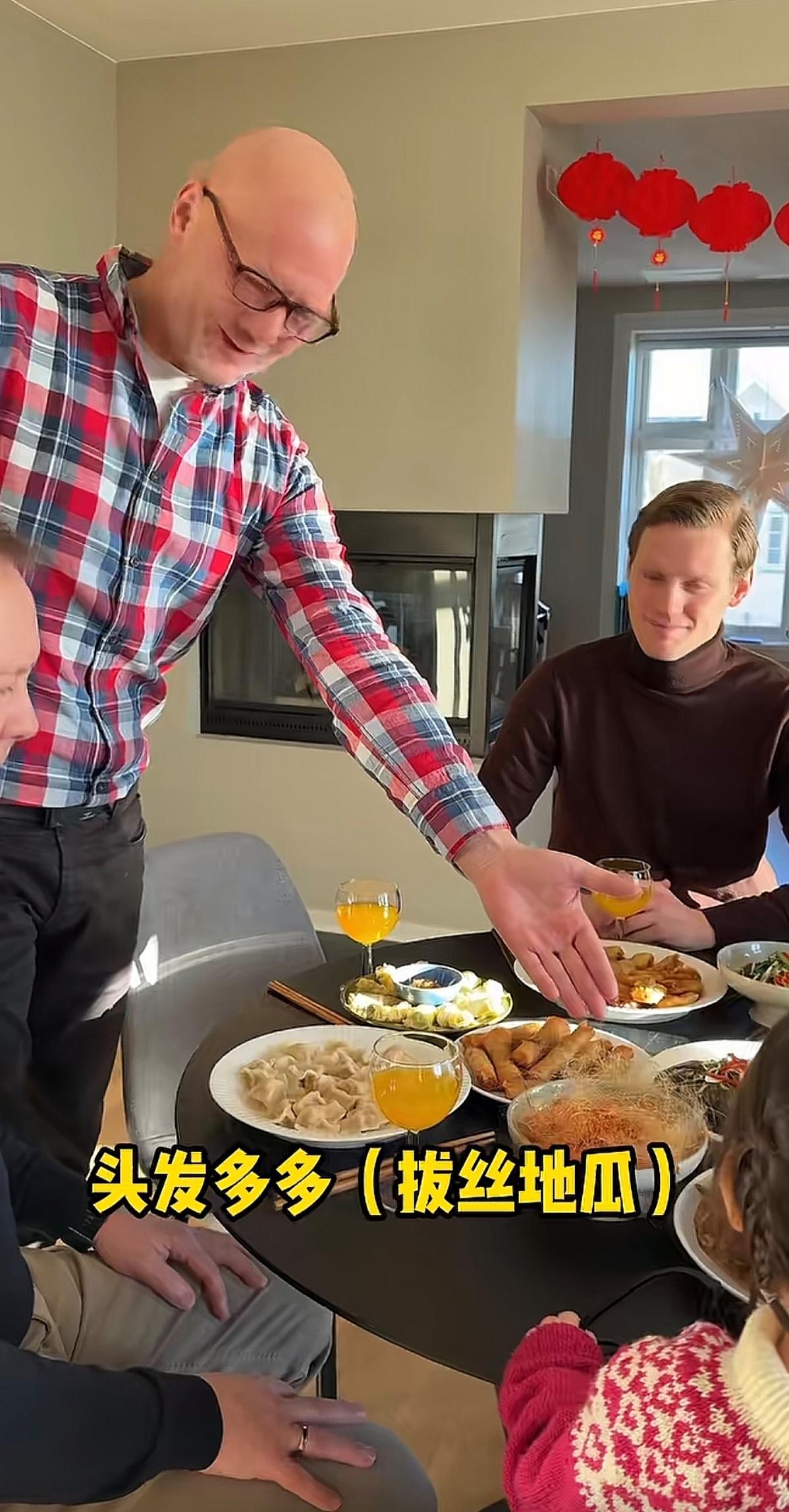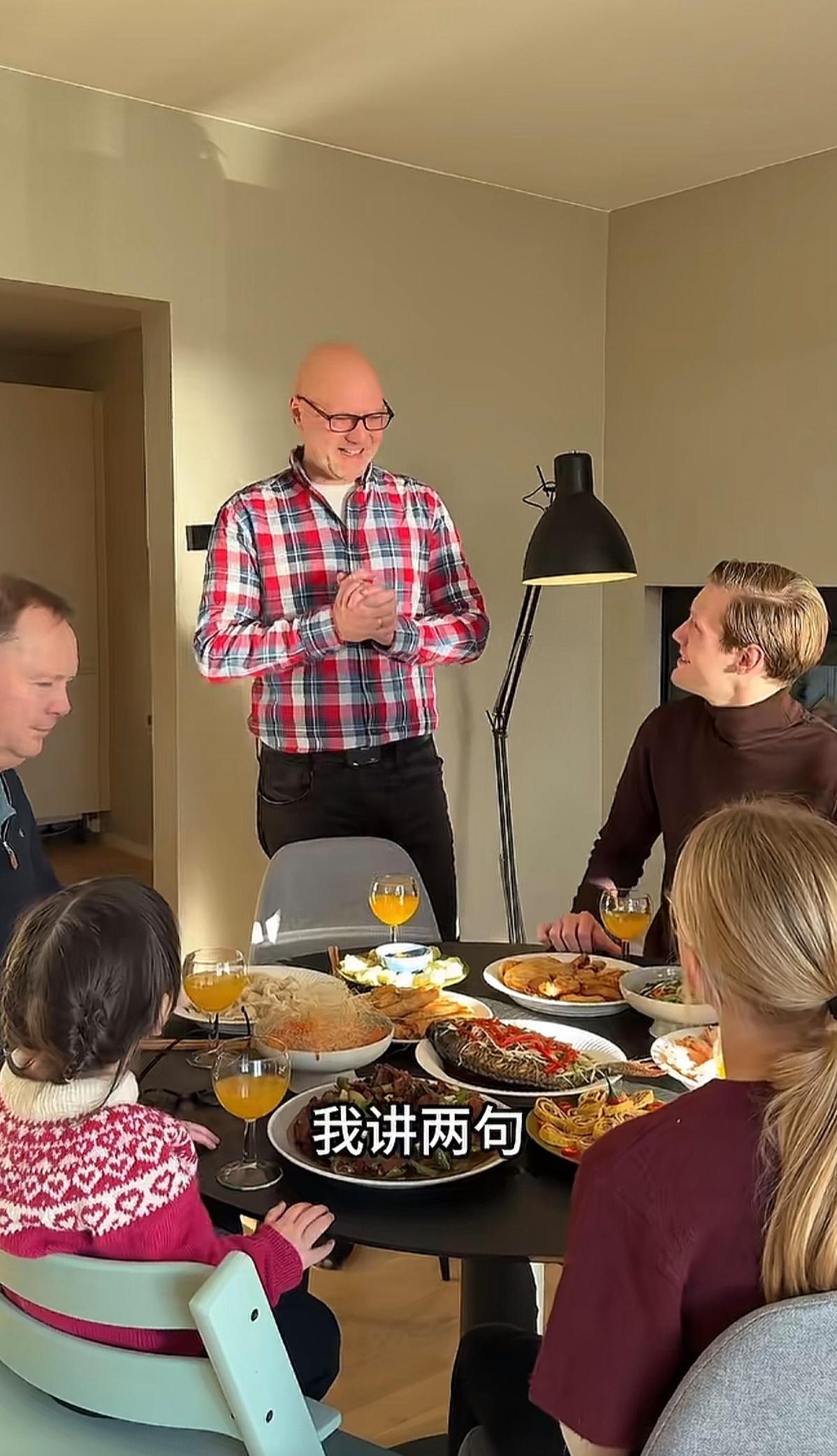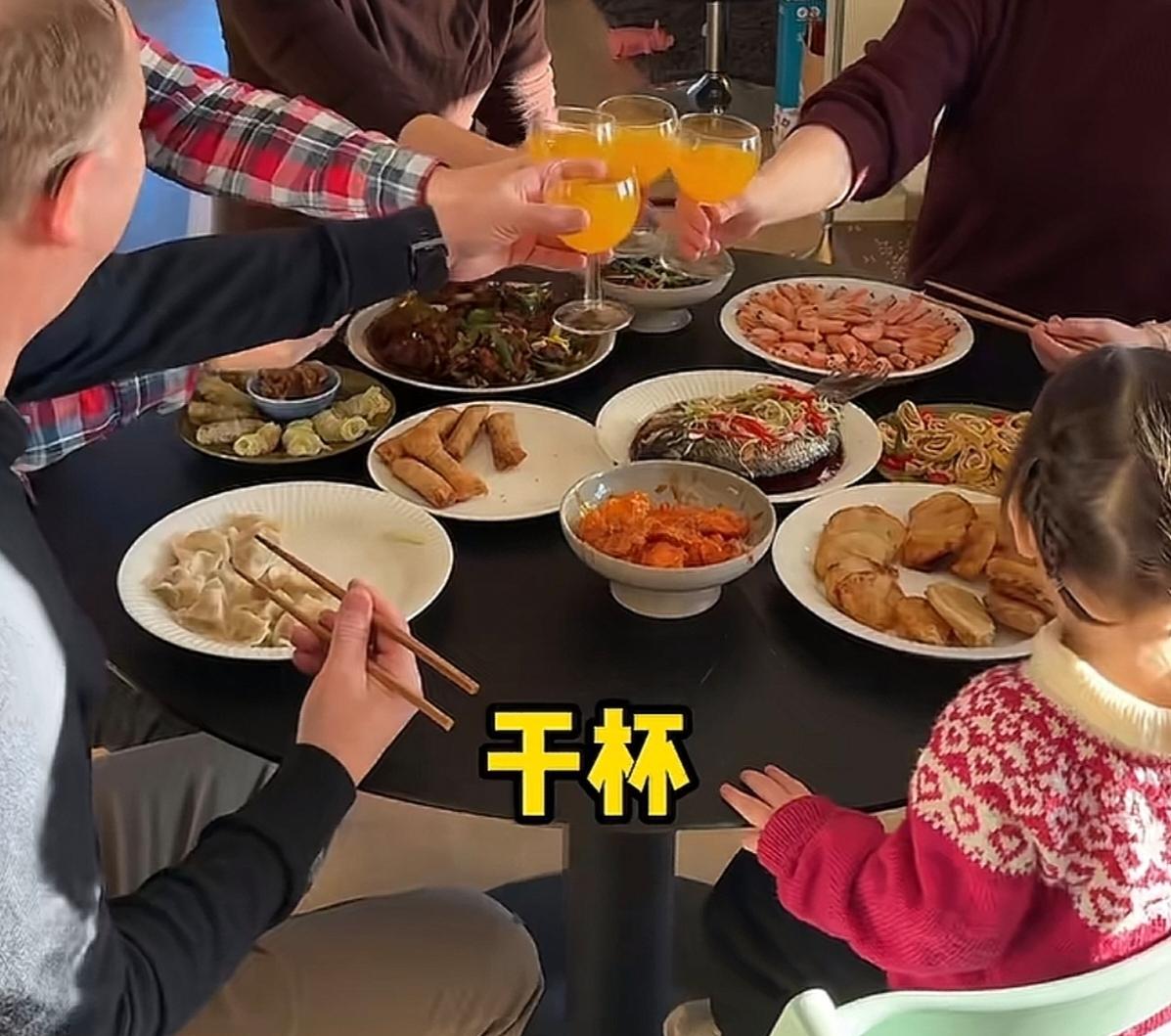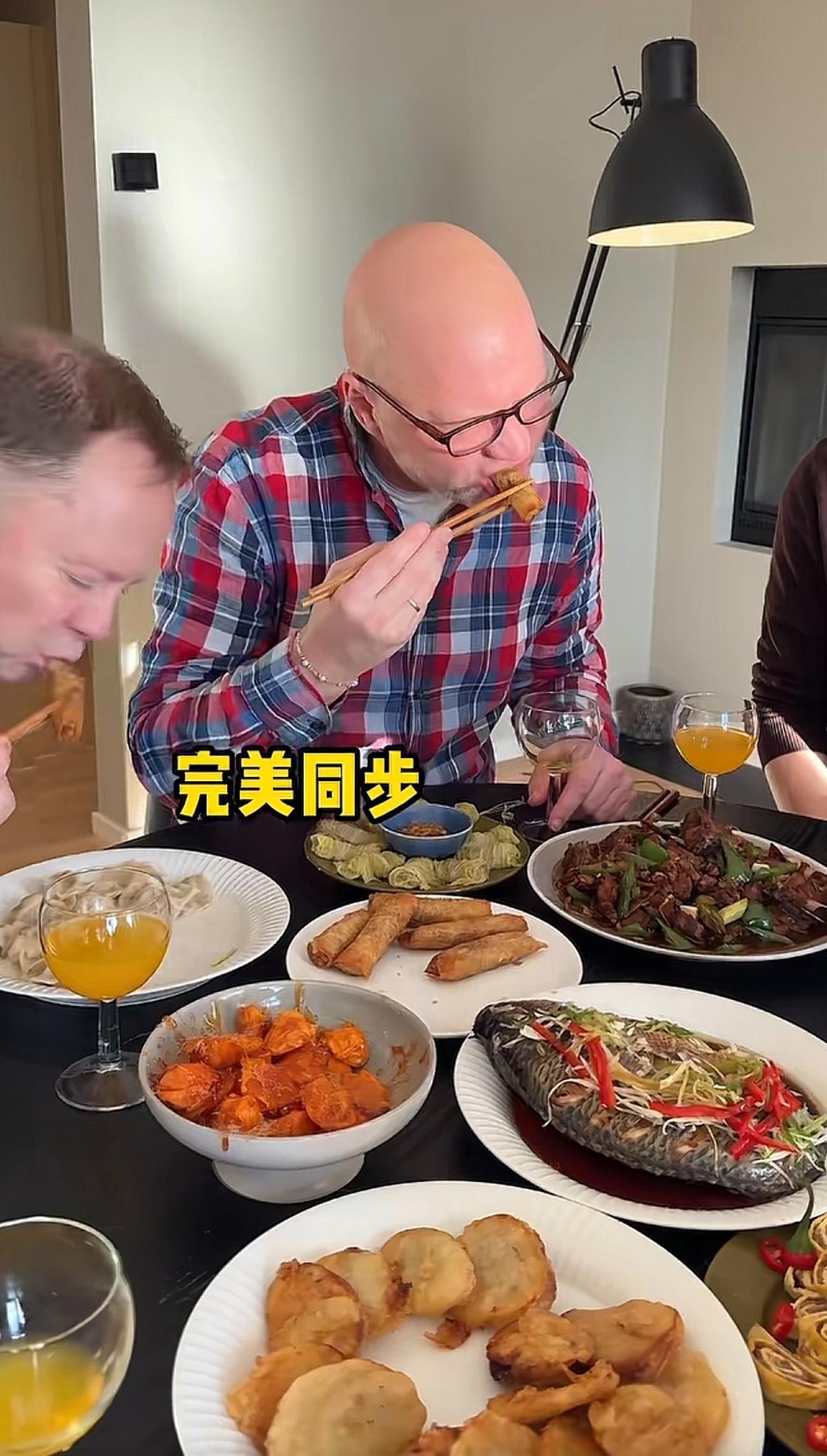 这是我见过的,比中国人,还像中国人的老外。这一桌中国菜,就算是中国人,可能都不一定能做的出来。而且菜名取的,也很中式。餐前讲话内容,也是中国式的仪式感十足。这个筷子,使用的,那也相当的熟练。关键是,他们没有像其他老外那样,每人端一盘菜,分餐吃。这样的老外,也可以说是生活中的中国通。当然,也有不足的地方,就是没有准备个人使用的小碗,菜只能夹起来,直接吃掉。