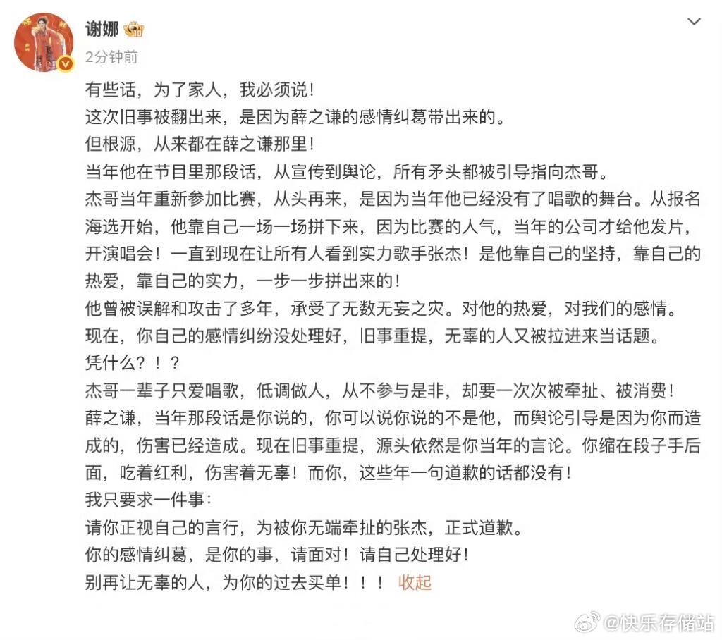 谢娜长文喊话薛之谦||张杰