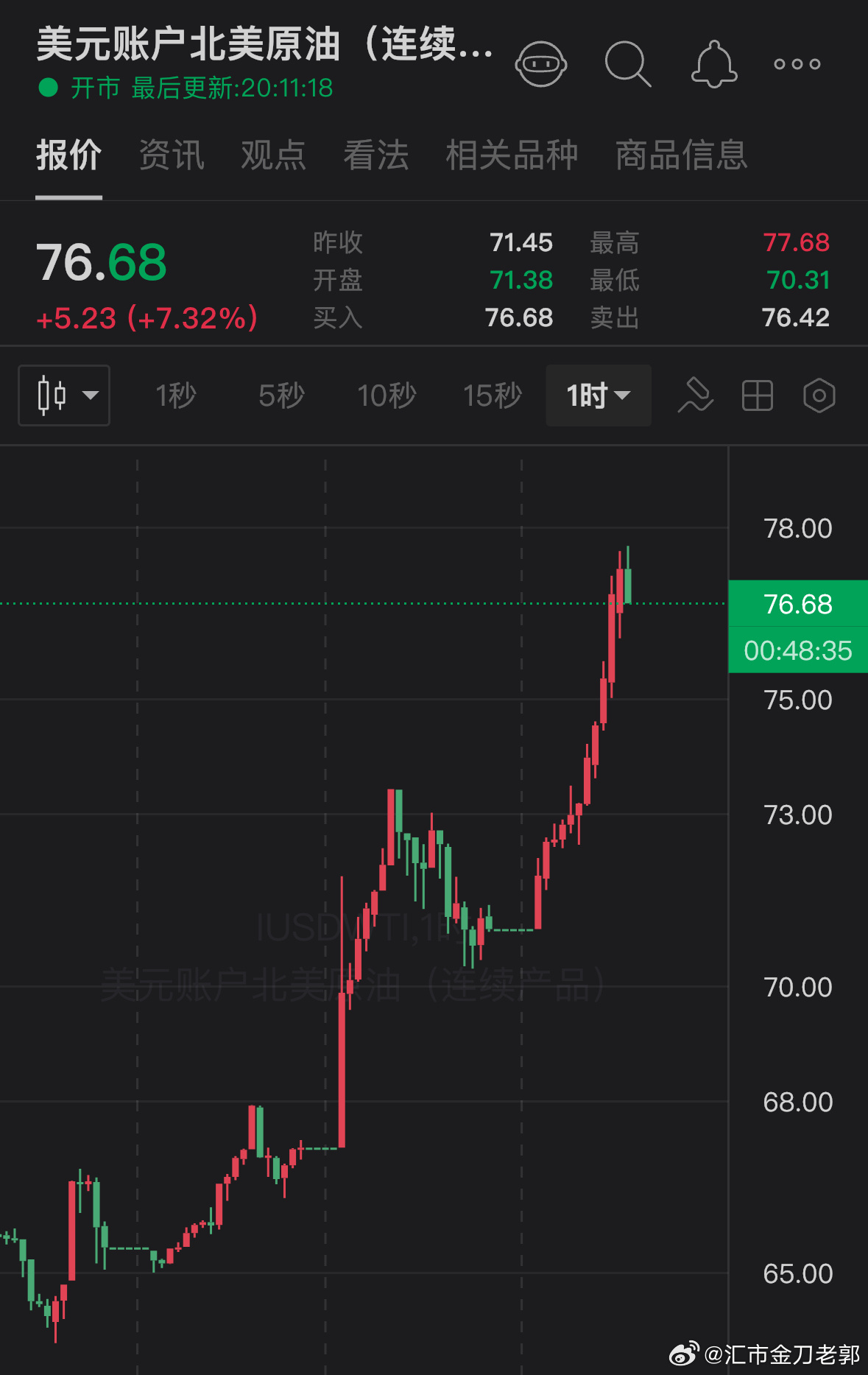 原油继续大涨对于油来说,很漂亮的走势,之前提到过,对于油的基本面,是看涨的预期。那么后续,我们日内需要关注74.90、72.66这两个位置撑住,还有向上的势头。81、83.5是我们的预期目标美原油外汇黄金原油
