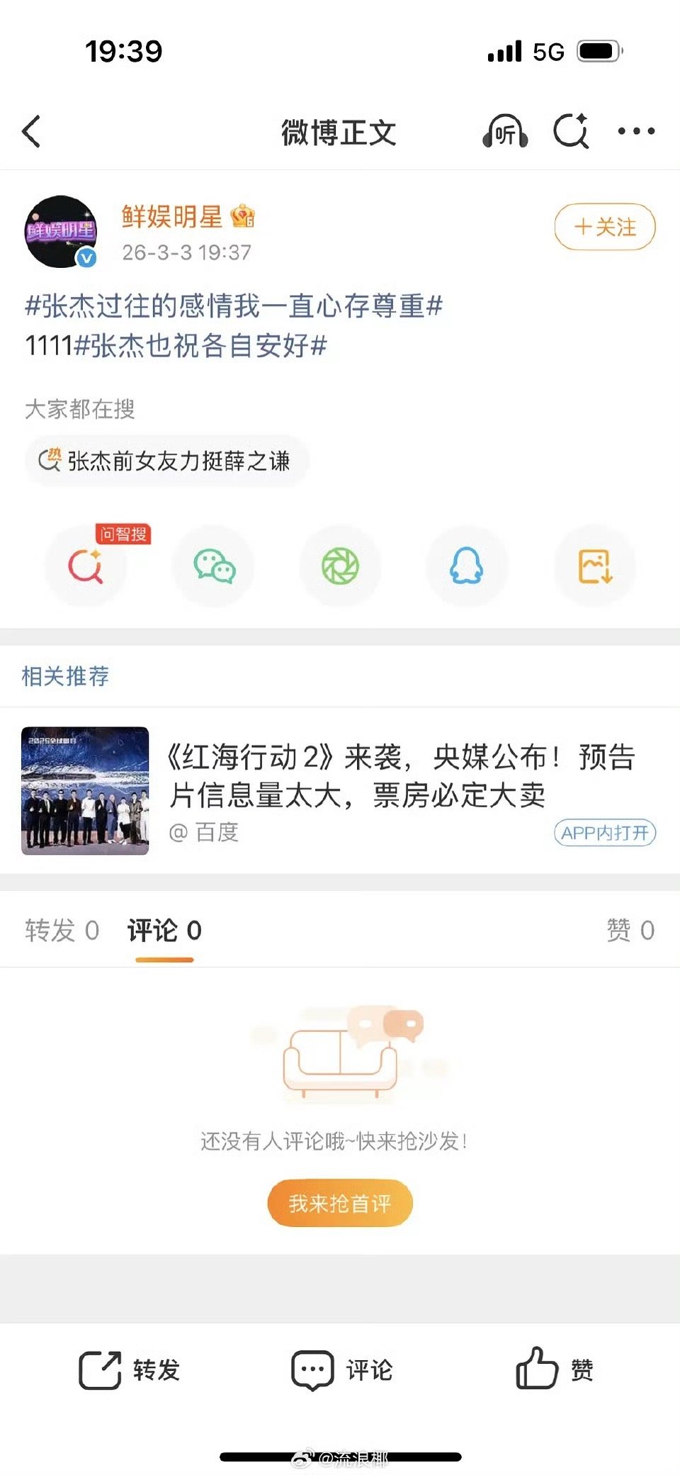 张杰回应发表时间7.45,这个yxh7.37就开始做话题了