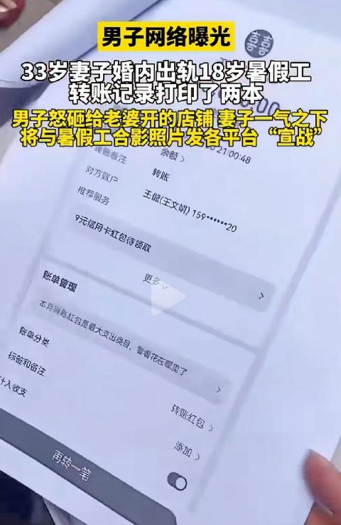 太嚣张了!男子婚后给妻子开了一个店铺,没想到,33岁的妻子竟然婚内出轨18岁暑假工小伙,给小伙的转账记录更是多到数不清。拼命赚钱养家,最后家被偷了,男子难压心中怒火,一气之下砸了妻子的店铺。岂料,妻子并不服气,反而觉得丈夫让她失了面子,直接把她和小男友的私密合照公开发到群里,借此挑衅丈夫。 谁也想不到,一个男人掏心掏肺撑起的家,最后会以这样荒唐又伤人的方式收场。结婚之后,丈夫一心想让妻子过得轻松体面,拿出自己多年的积蓄,又四处张罗,帮妻子开了属于她的店铺,让她不用看别人脸色,能安稳做自己的小生意。 他自己则在外拼命打拼,扛起家里所有开销,从房贷车贷到日常开支,从来不让妻子操心,只希望一家人安安稳稳过日子。 他以为自己的付出能换来安稳的生活,却没料到,平静的日子里藏着他想不到的背叛。妻子 33 岁,打理着丈夫用心帮她开起来的店铺,身边来来往往都是员工,其中有一个刚满 18 岁的暑假工小伙,年轻有活力,没想到两人一来二去,竟然突破了婚姻的底线,发生了不正当关系。 这段违背道德的关系,从一开始就瞒着丈夫,妻子一边享受着丈夫提供的安稳生活,拿着丈夫辛苦赚来的钱,一边和年轻小伙保持亲密往来,完全把婚姻的忠诚抛在了脑后。 更让人心寒的是,妻子对这个 18 岁的小伙出手十分大方,日常转账、买礼物、各种开销一笔接一笔,金额从几百到几千不等,时间跨度长达数月,转账记录密密麻麻堆在一起,多到数不清。这些钱,全是丈夫辛苦打拼攒下的家底,是他为家庭、为妻子付出的心血,最后却被妻子用来讨好外人。 丈夫平日里忙于工作,对妻子十分信任,从来没有过多怀疑,直到身边亲友提醒,他才慢慢发现妻子的异常。 妻子开始频繁晚归,总是以加班、谈生意、和朋友聚会为借口,不愿意回家,对家里的事情不管不问,对丈夫的态度也越来越冷淡,经常不耐烦地敷衍他的关心。丈夫心里渐渐升起疑虑,却还是不愿意往最坏的地方想,他一次次说服自己,妻子只是忙于店铺生意,压力太大才情绪不好,直到他亲眼撞见不堪的一幕,所有的自欺欺人全都碎了。 那天妻子照旧说要在店里加班,丈夫心里不踏实,特意跑去店铺想接她回家,却发现店铺早已关门,根本没有人在加班。他顺着线索一路找过去,在地下车库里,亲眼看到妻子和那个 18 岁的暑假工小伙待在一起,举止亲密,完全超出了正常老板和员工的界限。 眼前的画面像一把刀子,狠狠扎进丈夫心里,他怎么也不敢相信,自己全心信任、全力支持的妻子,会背着自己做出这样的事情。 被当场撞破之后,妻子没有丝毫愧疚和悔改之意,没有道歉,没有解释,反而一副破罐子破摔的态度,坦然承认自己的所作所为,没有半点对婚姻、对家庭的责任感。 丈夫看着眼前这个熟悉又陌生的女人,想到自己多年的付出,想到自己拼命赚钱养家,最后却被最亲近的人背叛,家被外人轻易 “偷” 走,心里的委屈和愤怒再也压不住。 他越想越心寒,一气之下冲到妻子的店铺里,看着这个自己出钱出力帮她开起来的店面,如今却成了妻子背叛自己的地方,情绪彻底失控,动手砸了店里的东西。 玻璃破碎的声音、物品倒地的声响,没能让妻子清醒,反而彻底激怒了她,她觉得丈夫当众砸店,让她丢了面子,在亲友和外人面前抬不起头,心里只有怨恨,没有反思。 为了报复丈夫,妻子做出了更离谱的举动,她不仅不觉得自己婚内出轨有错,反而把自己和 18 岁小男友的私密合照,直接公开发到了亲友群、社区群里,丝毫不在意自己的行为会给家庭、给孩子带来多大的伤害。 她用这种极端的方式挑衅丈夫,仿佛在炫耀自己的背叛,完全不顾及道德底线,也不顾及多年的夫妻情分,把一场婚姻闹剧,闹得人尽皆知。 消息传开之后,身边的亲友、附近的邻居全都议论纷纷,没有人不替丈夫感到不值。他掏心掏肺对妻子好,给她开店,为她扛下生活所有压力,勤勤恳恳守护家庭,最后换来的不是珍惜和陪伴,而是明目张胆的背叛、肆无忌惮的挥霍,还有毫无底线的挑衅。 而妻子明明是犯错的一方,却始终嚣张跋扈,把别人的付出当成理所当然,把婚姻当成儿戏,最后把好好一个家,弄得支离破碎。 这件事也让很多人看清,婚姻从来不是一个人的独角戏,需要两个人共同珍惜、彼此忠诚。单方面的付出和包容,换不来长久的幸福,只会让不懂感恩的人得寸进尺。真正的婚姻,是不管外面有多少诱惑,都能守住内心的底线;是不管日子过得平淡还是精彩,都不忘当初牵手的初心。 那些把别人的好当成理所当然,肆意践踏婚姻忠诚、伤害家人的人,最后只会亲手毁掉自己拥有的一切,落得众叛亲离的下场。婚姻不是游戏,不能随意挥霍,更不能用来赌气挑衅,尊重伴侣,守住底线,才是对自己、对家庭最负责的态度。 面对这样毫无底线的背叛和挑衅,你觉得丈夫该如何维护自己的权益?婚姻里最不能触碰的底线,到底是什么?