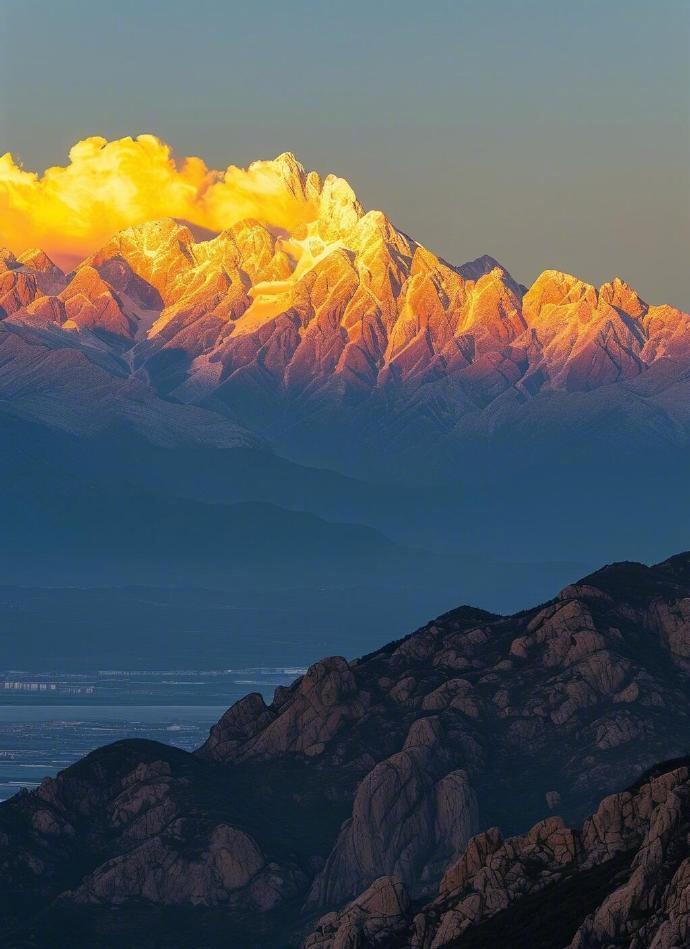 “日照金山,见者好运..."