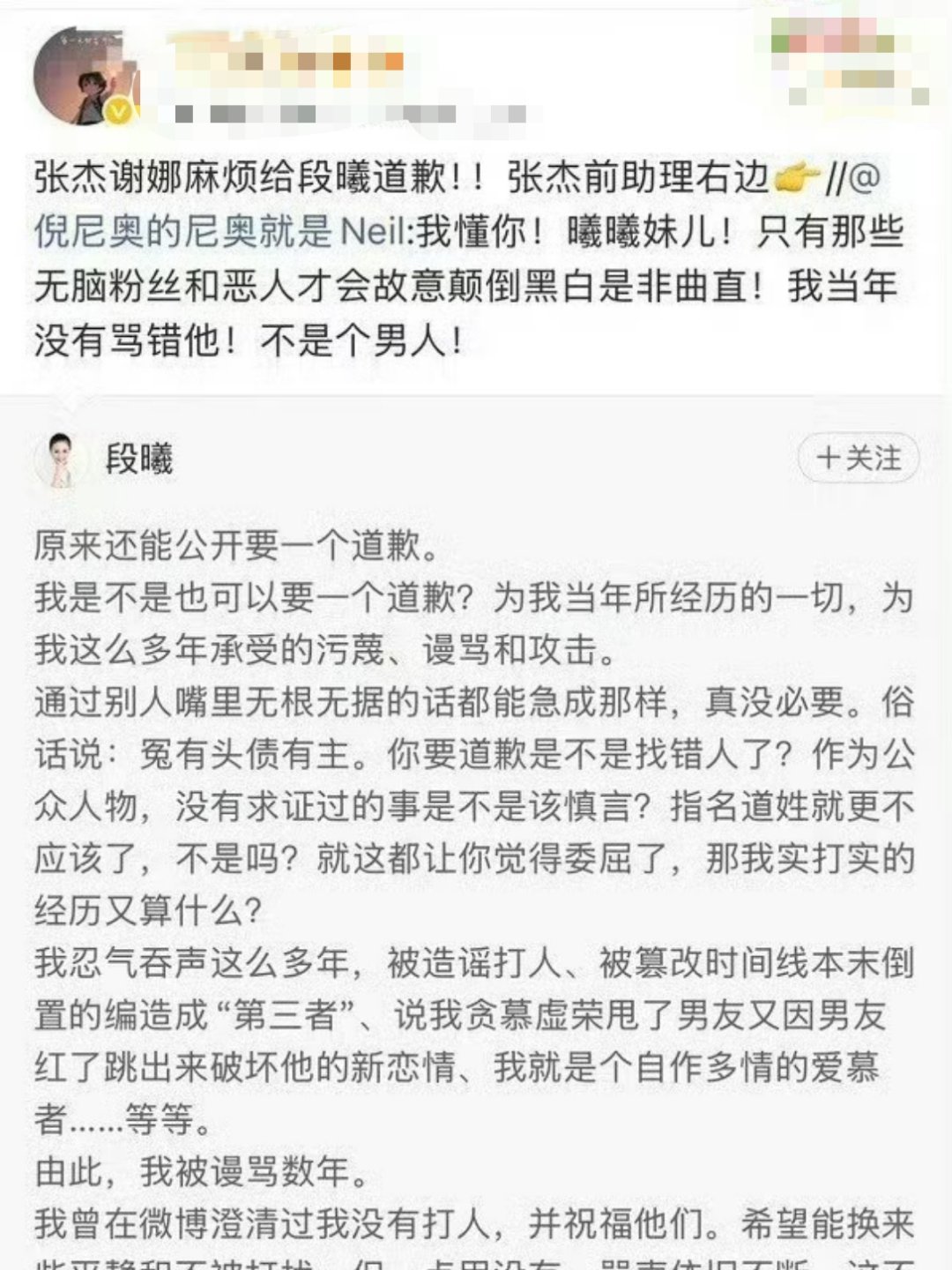 张杰前女友 被出轨是事实张杰前助理吐槽谢娜张杰 自称张杰前助理的网友公开发文痛批张杰"不是个男人",并要求杰哥向其前女友段曦道歉,疑似指谢娜吃了当初网络不发达的红利,才从中插足了杰哥与前女友。对此,张杰曾表示当初是单身,以后不回应。