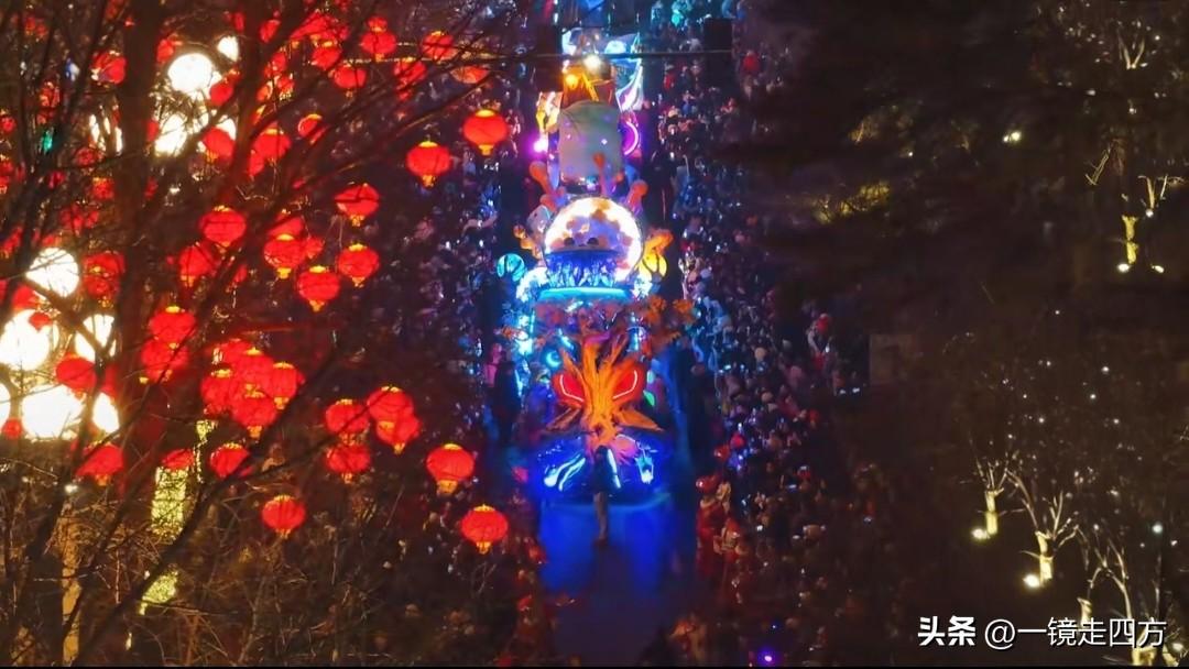 元宵夜,长春新民大街晚上再封路,上演欢乐主题巡游和各种表演,大家笑称,又来了一亿