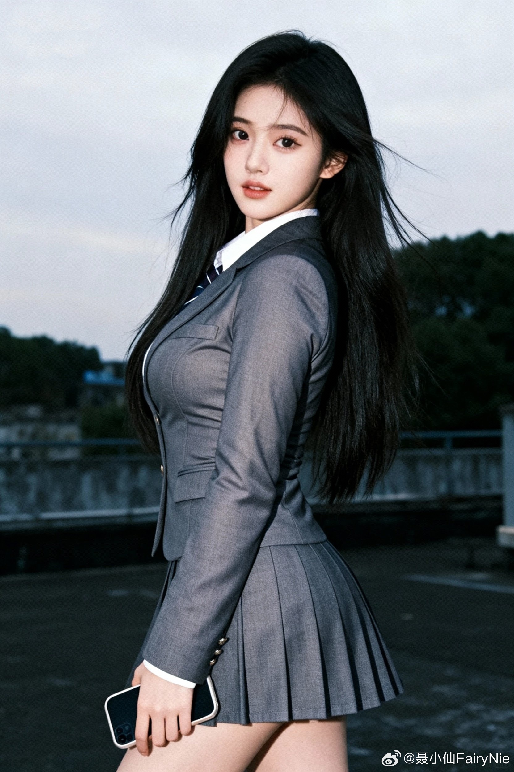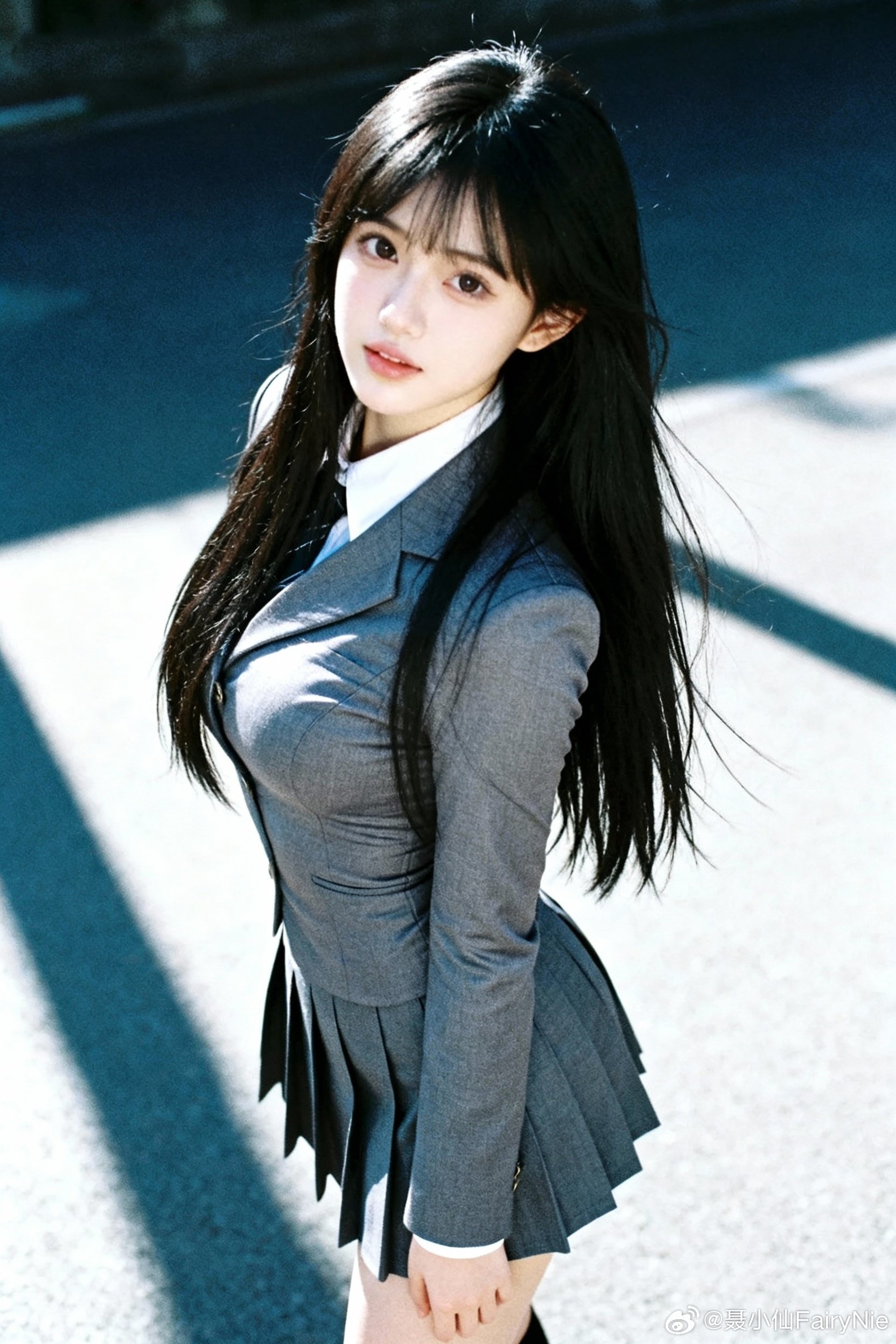 谁懂啊!校服照真的好有氛围感😊蓝色系不一定代表忧郁,还有可能是青春活力!聂小仙