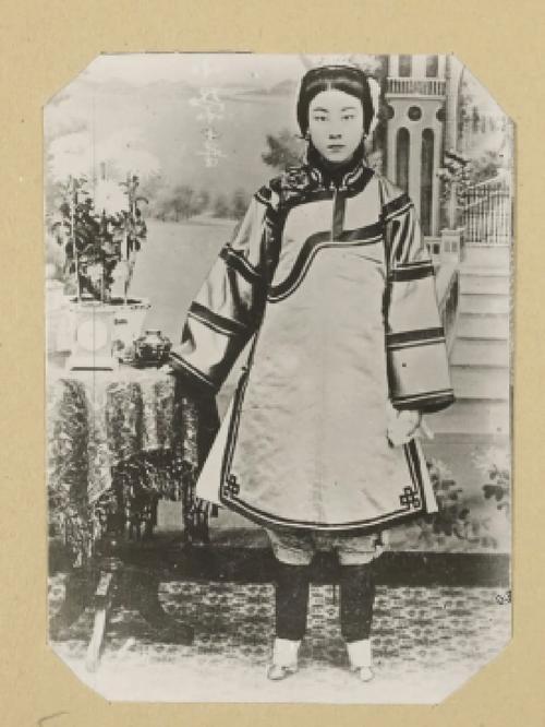 这张照片中的人物是晚清名妓(名伶)小荣喜(也作小喜荣),小荣喜是晚清京剧界公认的“第一坤角”,清末坊刻唱本《斩黄袍》中记载“第一坤角小荣喜”,擅长旦角表演,唱腔清亮、身段优美,是早期京剧坤角中的标杆人物。 因技艺与容貌出众,她的演出受众以皇亲贵胄、富商巨贾、驻华外籍人士为主,现存最清晰的小荣喜照片由法国驻华使馆武官菲尔曼·拉里贝拍摄于1900—1910年,拍摄地为北京。