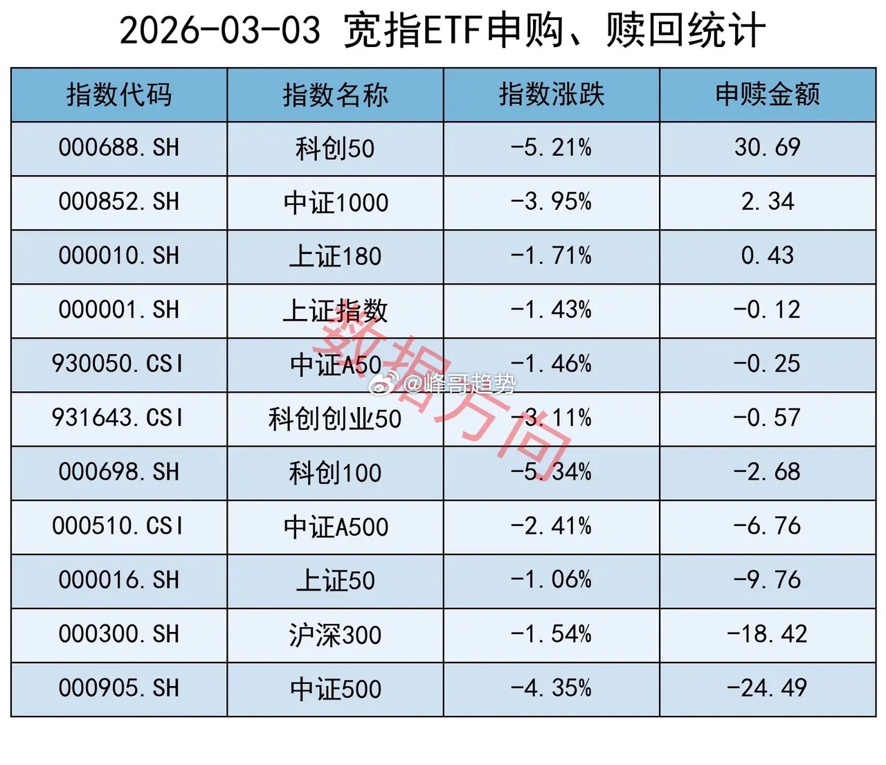 中证1000指数(2.34亿)、上证180指数(0.43亿),分别获小幅净申购。