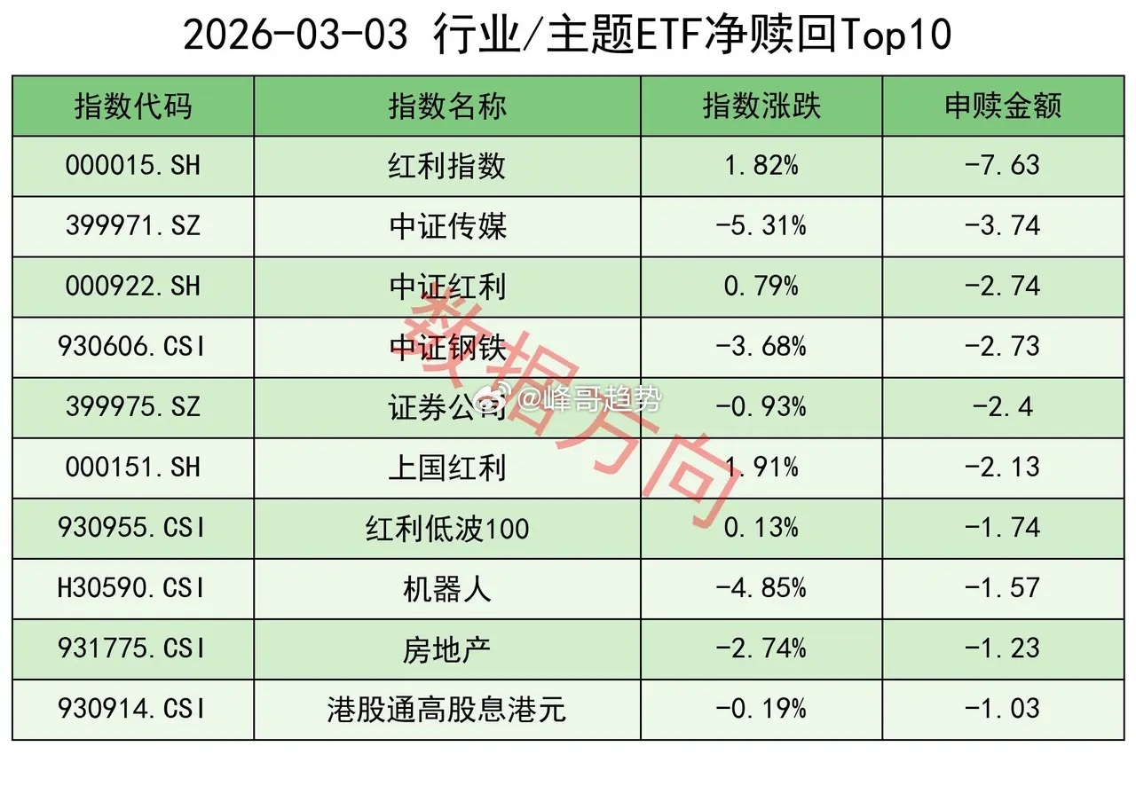 其他进入赎回榜的还有:中证传媒指数(-3.74亿)、证券公司指数(-2.4亿)、机器人指数(-1.57亿)、房地产指数(-1.23亿)。