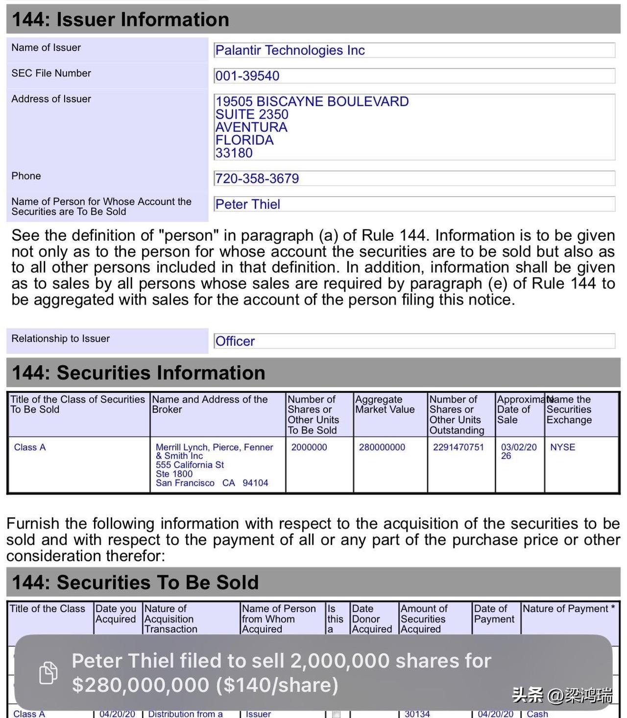 彼得·蒂尔(Peter Thiel)是硅谷极具影响力的风险投资家、企业家及政治活动家,被誉为“风投教父”。他因共同创立 PayPal 及其“PayPal 黑帮”的核心地位而闻名,同时也是 Facebook 的首位外部投资者。Palantir Technologies是他2003年创立的大数据分析公司,长期服务于美国国防与情报机构。 彼得·蒂尔刚刚抛售了 200 万股 Palantir 股票。 再读一遍。 他一手打造了美国军方的监控系统。他的软件在中央情报局、国家安全局和五角大楼内部运行。他完全了解美国每个作战室里正在发生的事情。 他刚卖掉了200万股。 正值战乱时期,炸弹仍在落下,6名美国士兵已装进裹尸袋,而特朗普却说“还有4到5周”。 现在国防股应该暴涨才对。战争真的爆发了。Palantir最大的客户是美国政府。这应该是他大赚一笔的时候了。 但他既不买入,也不持有。 他正朝着出口跑去。 问问自己为什么。 第一步:蒂尔拥有最高级别的安全许可权限。他能看到大多数人永远看不到的情报。 第二步:如果战争进展顺利——如果美国正在获胜——你不要抛售国防股。你应该继续持有,直到股价飙升。 第三步:他趁强卖出。这意味着他知道强势不会持续。市场尚未消化即将发生的变化。 第四步:当真正掌控美国战争机器的人在战争期间套现时——这不是牟利,而是一种警告。 第五步:上一次内部人士在冲突中如此大规模抛售股票是什么时候?就在事情变得更糟之前。 霍尔木兹海峡关闭。伊朗甚至还没部署潜艇舰队。真主党刚刚开辟了第二条战线。油价飙升。黄金价格创历史新高。市场一片惨淡。 那个什么都看得见的人刚刚卖掉了房子。 他知道些什么,但他没告诉你。 但他的交易确实发生了。