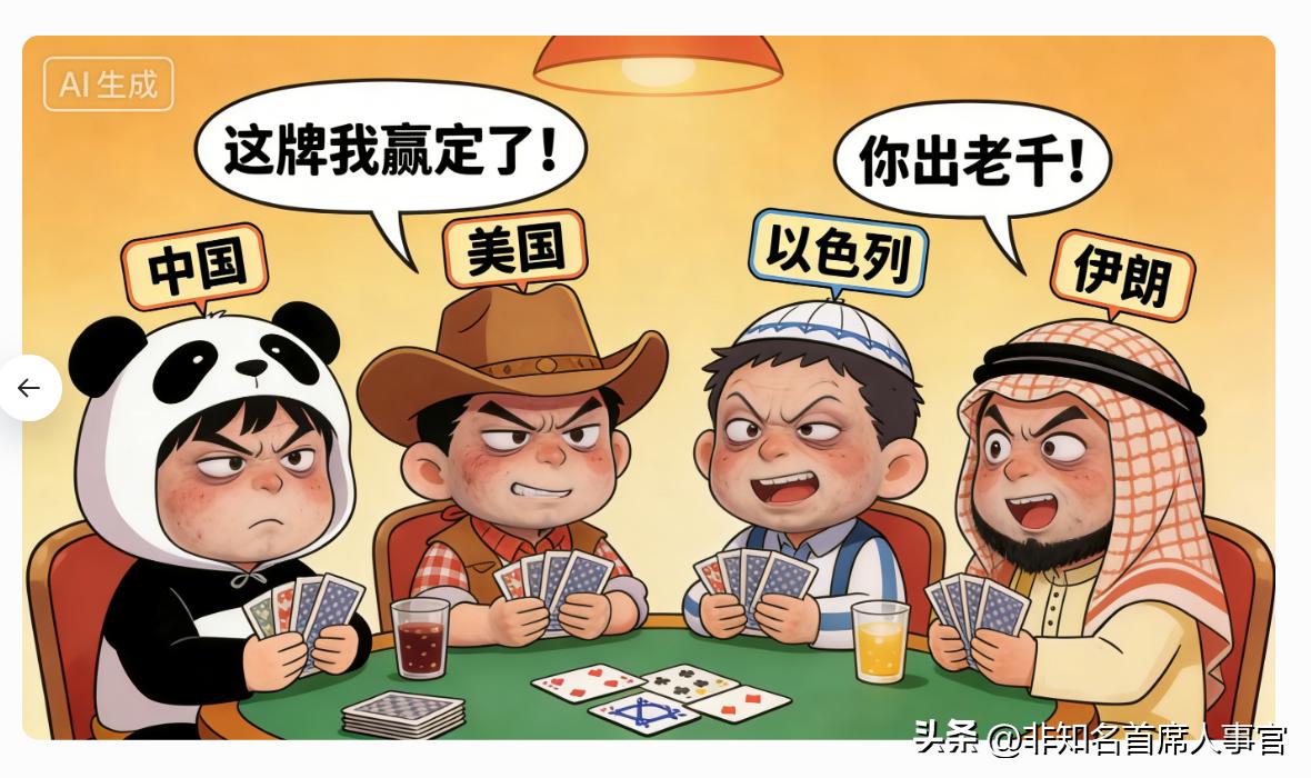 【中美俄伊打牌!中国竟然出了网民】 美:我出航母与B2轰炸机。 以:等一下,我跟个炸! 俄:我打,我出防空系统。 中:过! 又一圈到中国了:我还是过! 持续打十圈了,中国:过! 美俄以伊:你不能一直过啊,必须出牌,什么洲际大杀器也行。 中:我出网民! 美俄以伊:你,你,你欺人太甚......