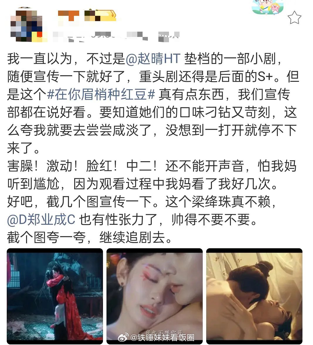 别再用女演员的亲密戏、擦边镜头宣传了,全是男凝视角,看得生理性不适。。。。