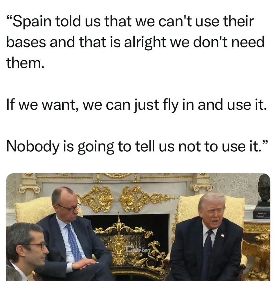 美国总统特朗普3月3日放话,要切断和西班牙的所有贸易往来。 理由有两条。一是西班牙拒绝让美军用他们的军事基地去打伊朗。二是西班牙的军费开支一直没达标。 西班牙政府前几天刚表过态,明确说不允许美国使用南部的莫龙和罗塔两个基地参与对伊朗的军事行动。他们说得也很硬:这种行动违反国际法,没得到联合国授权。从3月1日开始,至少15架美军飞机已经从那两个基地撤走,大部分是空中加油机,转到德国去了。 军费这事也是老矛盾。北约之前定过目标,成员国军费要占到GDP的2%。后来美国又往上加码,说要提到5%。西班牙一直卡在2.1%左右,离5%差得远。特朗普2025年就放过话,要通过贸易协议让西班牙“付出双倍代价”,还提过要把西班牙踢出北约。 这回直接升级到贸易断交。 特朗普的原话听着挺冲:“不让我们用军事基地,那就不用。现在不需要,等需要的时候,飞过去直接用,没人能挡着我们。西班牙是最糟糕的,西班牙人很好,政府很差劲。他们已经对财长发指示,停止与西班牙的一切贸易。他们的东西没有我们必须的,我们不想和西班牙打交道。” 西班牙那边没软。 政府回应说,不接受外部施压。如果美国真要改贸易关系,得尊重三样东西:私营企业的自主权、国际法、还有欧盟跟美国的双边协定。外交大臣阿尔瓦雷斯直接说,不担心任何后果,这个立场代表多数民众的意愿。他们还强调,自己在北约里不是没干活,3000名士兵部署在那儿。 西班牙拿《联合国宪章》和欧盟框架来扛,等于把美国放到单边主义那一边。北约内部的裂痕也撕得更开了。美国自己军费才占GDP的3.4%,却压着盟友往5%冲,还拿贸易当棍子使。 还有一个现实问题:西班牙是欧盟成员国,贸易协议得欧盟整体谈。特朗普说要“切断所有贸易”,能不能真做到,法律上还有得扯。 但话已经放出去了。跨大西洋联盟又多了一道裂口。欧洲对特朗普