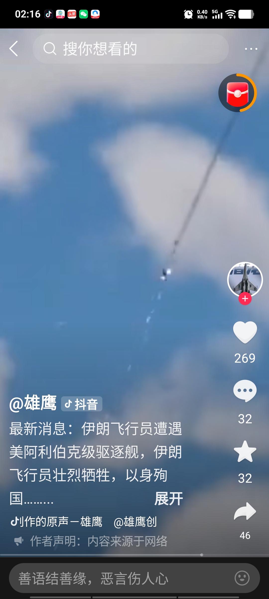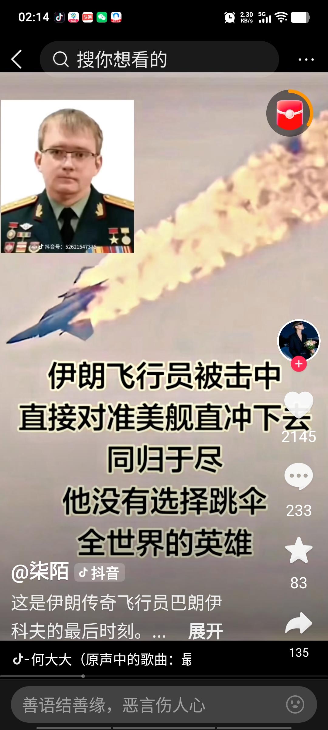 伊朗飞行员巴朗伊科夫少校,在飞机被美国导弹击中、机翼受损的情况下,并未选择跳伞求生,而是驾驶飞机径直冲向美国巡洋舰,狠狠砸向其平台。这种舍我其谁的大无畏精神,宛如我国抗日战争时期杭州笕桥高志航等1500名飞行员视死如归的壮举再现。 巴朗伊科夫的英勇之举,必将唤起伊朗人民反美、反以的斗志。他是当之无愧的民族英雄,全世界人民都将铭记他。