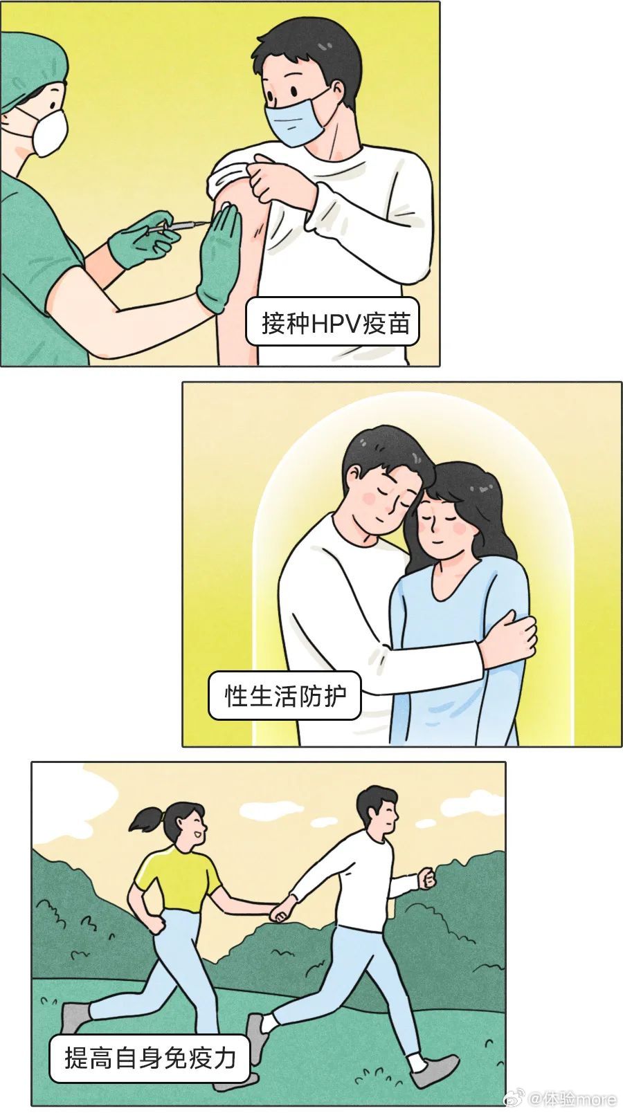 为了自己和伴侣的安全,男生也要重视HPV预防,因为男性感染后自己可能没感觉,但可以传给伴侣。去年男性HPV疫苗在国内获批了,所以男生除了注意安全性行为之外,也可以咨询医生去接种疫苗。