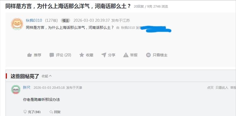 网友:同样是方言,为什么上海话那么洋气,河南话那么土? 你怎么反驳?还是支持这个观点?