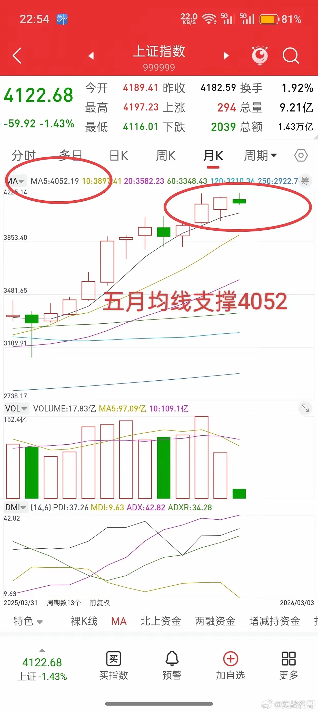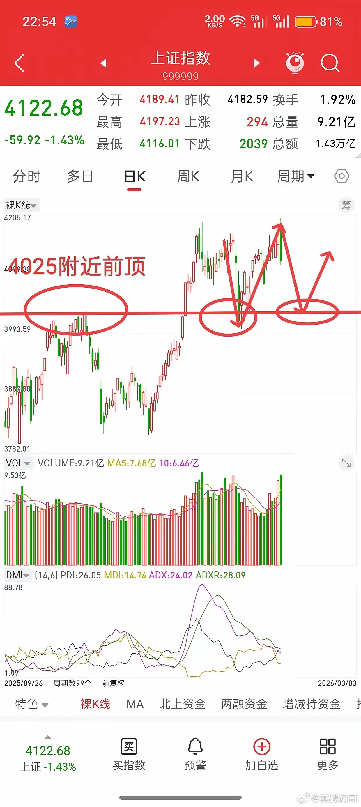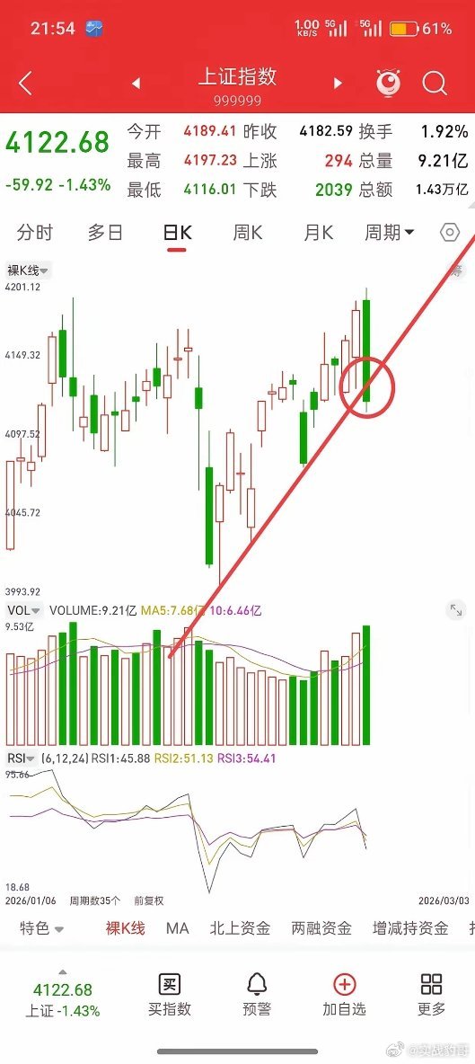 昨晚美股大跌,中国核心资产全线跳水,今日A股走势如何?先说观点,昨天下午就提示,一旦收盘跌破4002-4029上升趋势支撑,大概4130左右,就要注意风险。收盘前既然跌破,就要有动作,而不是还抱有侥幸心理,甚至患得患失,一个交易计划制定好,最重要的就是知行合一,哪怕最后发现这个交易计划是错的。有些人能做到知行合一,有些人做不到,做不到的也很正常,那是因为没有挨过市场的打,后面一旦被市场教训过,吃到了教训,总结了经验,就会变得灵敏的多。OK,谈一下今天大盘观点,低开是毋庸置疑,而且按照昨晚富时A50股指走势,预计会大幅低开,我昨天下午就有种预感,接下来很可能会砸出一个和前面4002差不多的低点。这样就会形成大级别双底,和去年11.24-12.16号相似,所以,接下来不着急抄底,等行情到4050下方,再找机会。因为五月均线支撑是4050左右,前顶是4025左右,再往下还有3985,到这些位置附近再开始慢慢低吸,抄底。有时候交易就是这样,小亏时不严格离场,最后连续砸盘,割在最低点,最后行情启动,又会踏空。所以,震荡行情,侥幸可能没问题,一旦遇到单边行情,一次侥幸,全盘皆输,因此,任何时候,不要心存侥幸,更不要患得患失。
