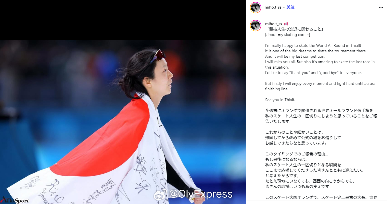 【日本速滑名将高木美帆将在世锦赛后退役】国际体坛动态 3月3日,日本速滑名将高木美帆在社交媒体上宣布,将在本周的世锦赛后退役。31岁的高木美帆在4届冬奥会上共获得10枚奖牌,是日本夺得奥运奖牌最多的女运动员。这10枚奖牌包括2金4银4铜。在刚刚结束的米兰冬奥会上,高木美帆夺得500米、1000米和团体追逐赛三枚铜牌。高木美帆目前还保持者女子1500米1分49秒83的世界纪录。