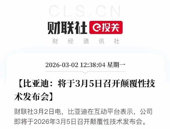 3月5日,比亚迪颠覆性技术发布会即将举行,2026款仰望U7、U8、U8L正式上市。这场关于硬核技术与高端越野的全新亮相,值得全网期待。