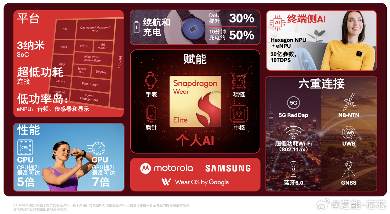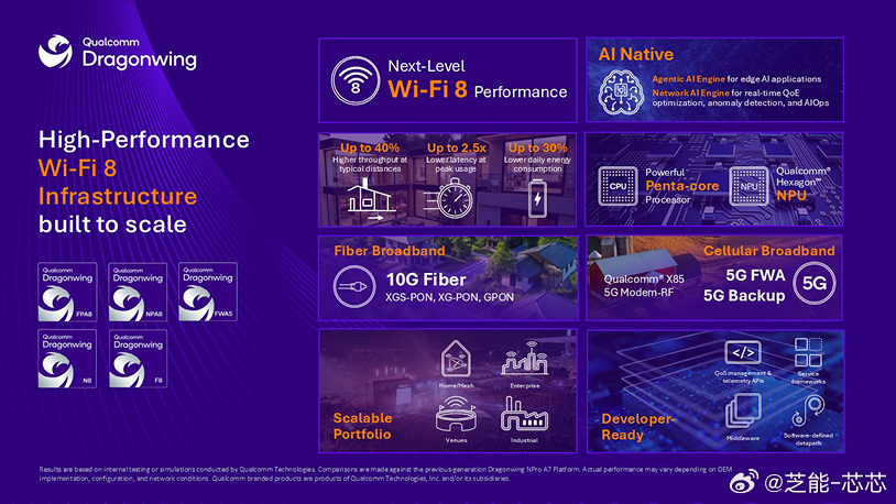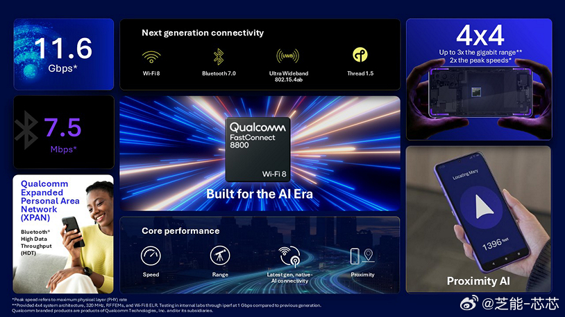 推出新一代可穿戴平台,主打端侧 AI 与多形态设备;发布新一代 5G Advanced 基带,为 6G 铺路,并带来 AI 原生 Wi-Fi 8 与面向运营商的智能 RAN 方案。
