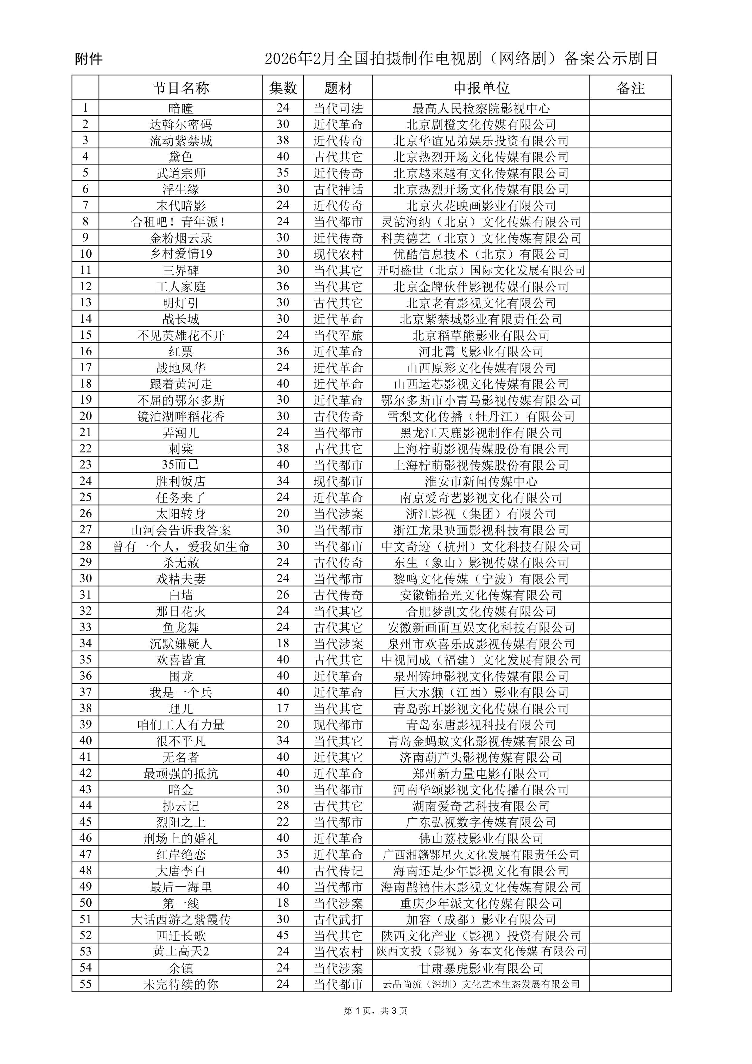【三体大史短剧备案】2026年2月全国拍摄制作电视剧(网络剧)备案公示,多部备受关注的剧集备案,来看看你最期待哪部剧?