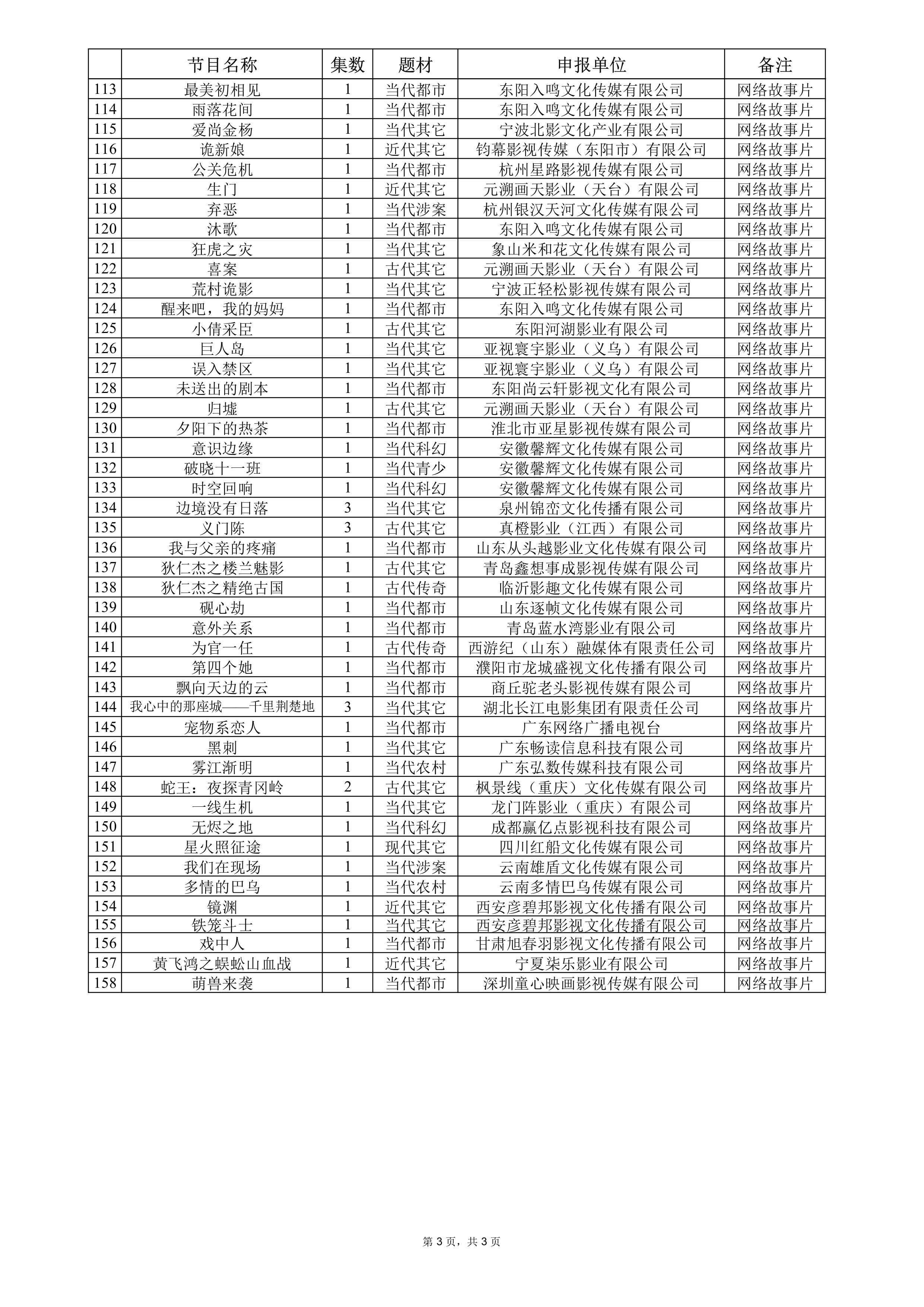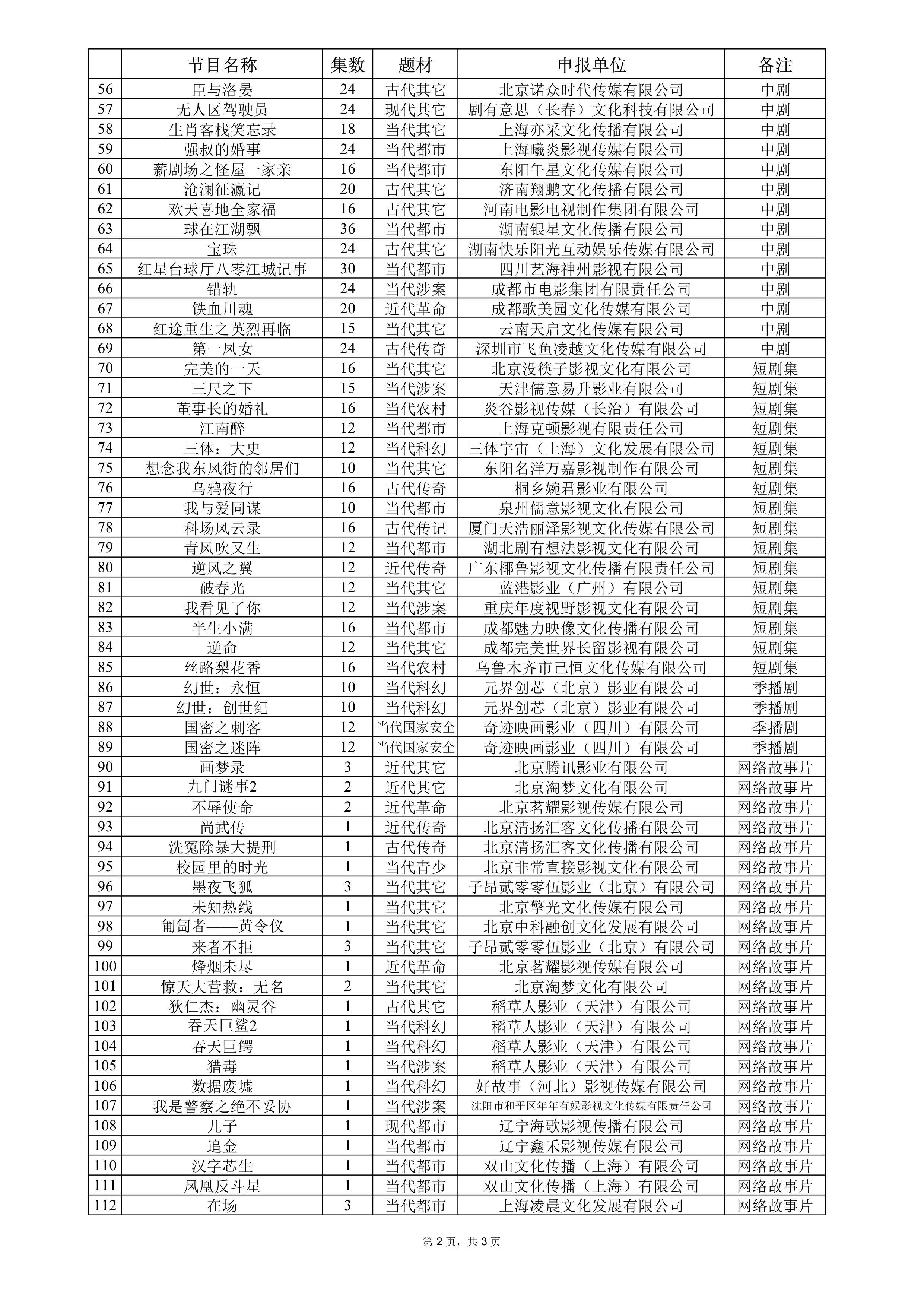 华谊兄弟《流动紫禁城》38集柠萌影视《刺棠》38集柠萌影视《35而已》40集爱奇艺《任务来了》24集爱奇艺《拂云记》28集腾讯影业《画梦录》3集网络故事片三体宇宙《三体:大史》12集短剧