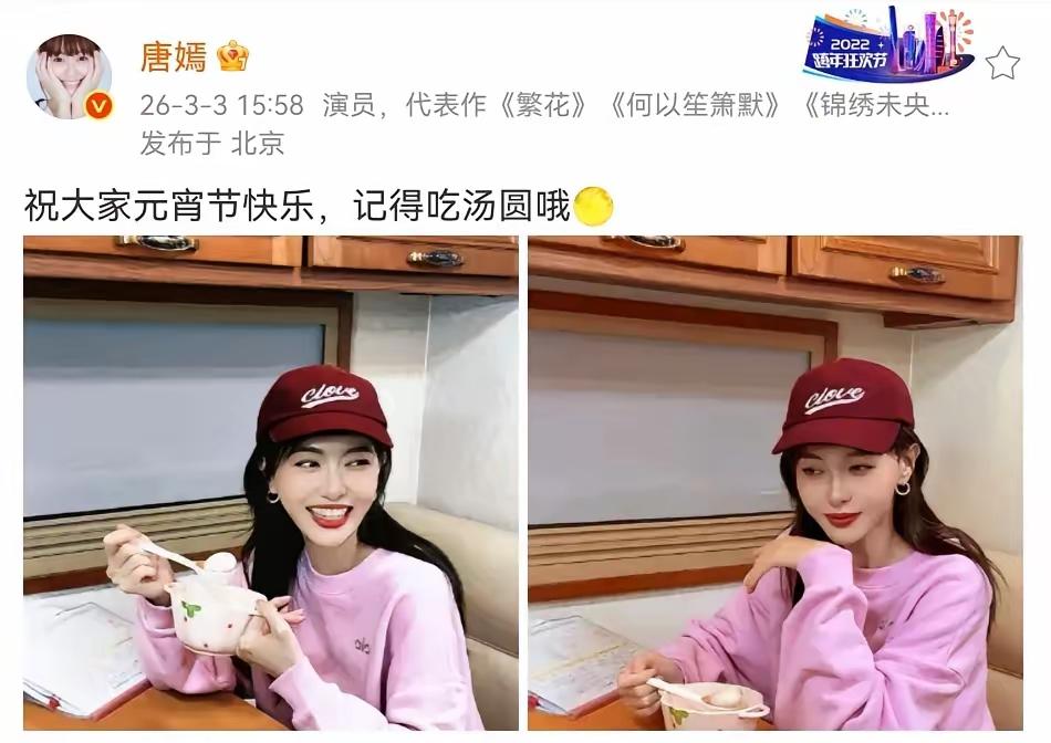 3月3日,唐嫣在社交平台分享自己的美照,并配文:“祝大家元宵节快乐,记得吃汤圆哦。” 照片中的唐嫣头戴酒红色棒球帽,身穿粉色卫衣。长发披肩,手端汤圆,笑容甜美,这造型亮丽又减龄!